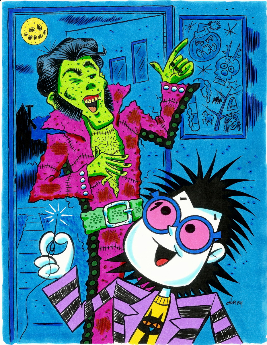 The assignment; do a class report on your favorite holiday. But odd little Donnie Druthers can’t decide between Halloween and Christmas, so he creates the hybrid observance of Christoween®. In his report, he details how Santa (stricken with the flu and unable to deliver toys) enlists the aid of his friend Frankenstein to cover for him. When Donnie meets his favorite monster delivering toys on Christmas Eve, a lifetime friendship is born!