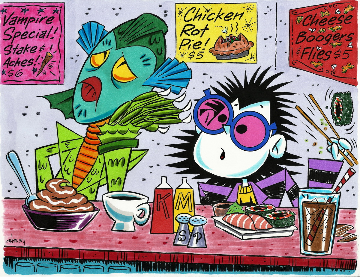 Donnie meets the legendary Creature of the Deep at a diner, but is saddened to learn of his odd impediment – the Creature is allergic to seafood! While attempting to find a solution to the culinary burden, Donnie contacts his friend Santa to see if any Christmas magic would help his aquatic friend. Indeed there IS a solution, but the price of the remedy may be more than Donnie’s willing to pay. It could mean an awful Christoween® sacrifice!