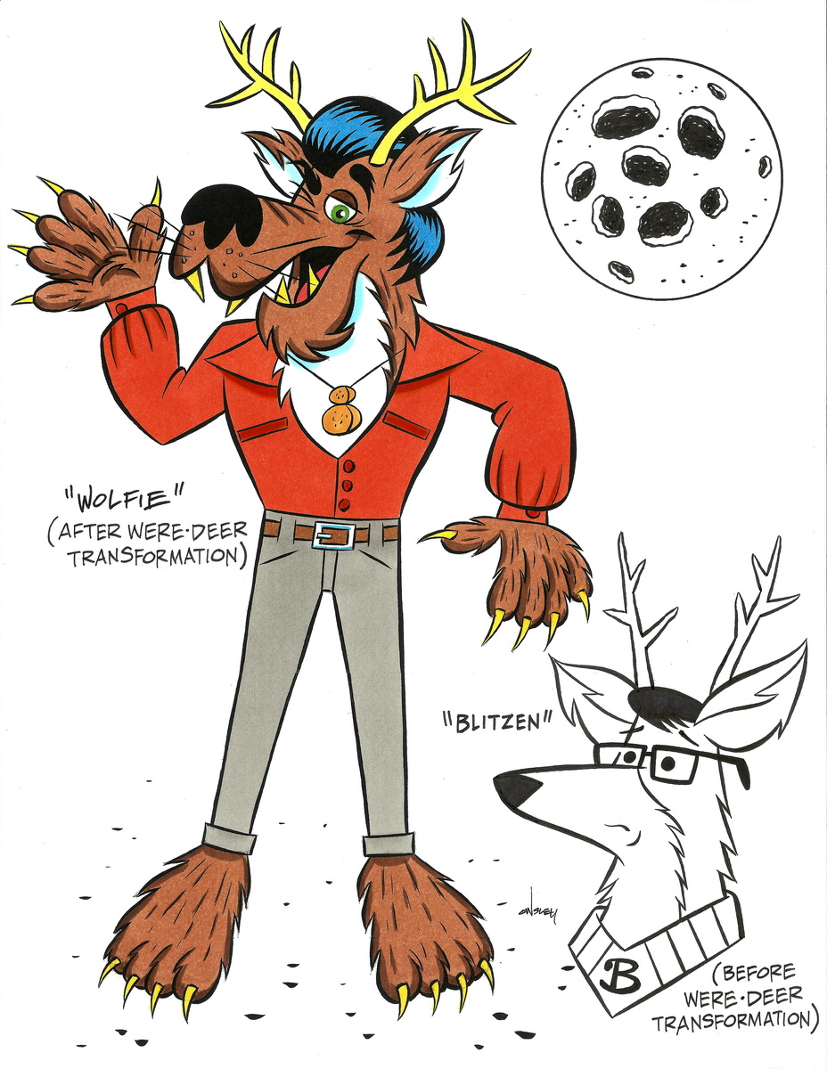 Santa’s reindeer Blitzen has a defect in his DNA that turns him into a Were-Deer each time the moon is full. He turns from meek and mild Blitzen, to brash and obnoxious “Wolfie.” The rest of the reindeer complain to Santa that he’s too difficult to work with in his transformed state. So Santa contacts his friend Donnie, who’s familiar with all things supernatural, to try and work out some sort of solution to his potential personnel problem.