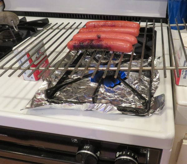 Necessity is the mother of invention! Grilled hot dogs on the stove!