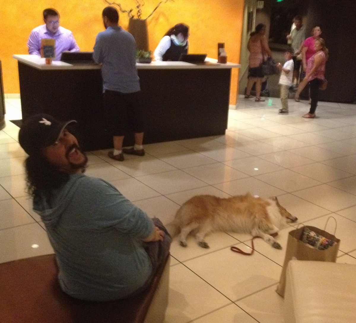 Completely exhausted after a night at the street fair, Roxy plops down in the middle of the Hyatt lobby for a quick snooze on the cool tile.