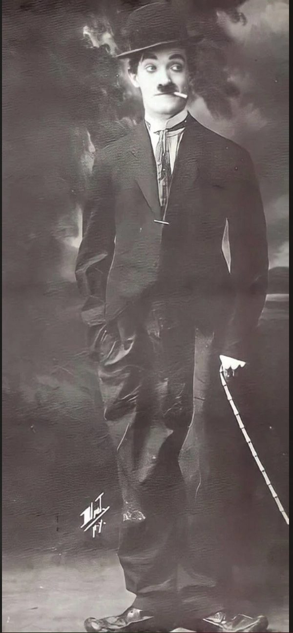 When Stan Laurel was trying to get into the movie business, he did an imitation of Charlie Chaplin to make extra money. Here’s a rare shot of him in character as The Little Tramp.