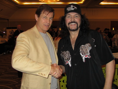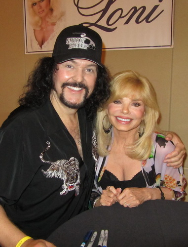 Saturday the 20th – FROM STAR-FILLED NIGHTS, TO A STAR-FILLED DAY! – I got up early (for a Saturday) to drive down to the LAX area for another Hollywood Collector Show. Sara drove, and we were joined by my pals Kristy and Amanda. Angie Dickinson was very pleasant and we had a great conversation. She grew up in North Dakota, just over the South Dakota border. She knew of Aberdeen, where I grew up, so we had a lot of fun talking about the old country. Ted Neely from “Jesus Christ Superstar” was there and I had him sign a photo he and I had taken with Carl Anderson back in the early 90’s. We were all backstage after one of their live “Superstar” performances at the Universal Amphitheatre. Carl’s been gone for several years now, and Ted looked at the picture for awhile. I could tell he was getting emotional. He asked if I would make him a copy of that photo. I said it would be my honor. I told him I knew of Carl because we played a lot of his music on 95.7 The Wave when I was a DJ there. Ted asked if I was still a DJ and I told him I quit radio and went into voice-over full-time back in the late 90’s. He asked about some of the things I did and when I mentioned “TTS” he lit up. “I watch every night!” Then I did the “TS” announcer voice for him and he laughed heartily. “I should be asking for YOUR autograph!” I told him it was worth about 3 cents on eBay. We had a great chat, but his line was getting long so I bid him farewell to let the other people have a chance to talk to him. Great guy. Sitting next to Ted was the great Barry Dennen, who played Pilate in “Superstar.” We had a great chat and I found out we have the same voice-over agent. It occurred to me as we were talking, that he did the voice for Chamberlain in “Dark Crystal.” I immediately slapped my forehead and realized I had forgotten to bring “Dark Crystal” stuff! Oh rats! But Barry gave me his contact info so we could meet up and he could sign some stuff for me later. Cool! I also had Howard Hesseman sign my “Tunnelvision” movie poster and DVD. “Tunnelvision” is one of my all-time favorite movies, and parodies a lot of TV shows. It’s edgy and fun, and in a way a little prophetic. It offers an early 70’s view of what TV would be like in the mid 80’s. Including a lot of profanity-laced, sexual, trashy TV shows. And what do you know…that’s pretty much what REAL TV is like today! Nell Campbell (Columbia) from “The Rocky Horror Picture Show” was there, so I had her sign a few things. I ran into my old pal Mike from Chicago, and we went next door to the Daily Grill to grab lunch. Mike called Butch Patrick (Eddie Munster) to come join us, and we had a great time. After lunch we went back into the show so I could get a picture with the lovely Loni Anderson. The last time I had met her the photo we took turned out blurry, so this was my chance to get a better one. Michael Pare was there, and he had worked with a friend of mine a long time ago in a film called “The Dangerous.” In fact, I have the laserdisc of it, and my friend Sherlyn and he are on the cover embracing. Pretty cool. Ron Dante, who was the singing voice for Archie in “The Archies” cartoons, signed my Archie fan club poster. It’s a very rare poster that you could only get from the fan club. I had one back in the day, but it didn’t survive. The one I have now was bought from a friend about 12 years ago. I remember spending hours looking at that poster when I was a kid, and being mesmerized by the bright, vivid colors. Ron said he hadn’t seen one of those in a very long time. We finished up our autograph seeking and headed home in bad traffic. I liked the show better when it was in Burbank, because I could stay there all day and not have to think about the time. Now that it’s all the way down by LAX, I constantly have to do math in my head to anticipate when the traffic will turn bad, and when we have to leave. It puts a serious damper on the fun element of the show. If the show doesn’t come back to the Burbank area again, I may stop going, as it’s often times not worth the hassle of all the traffic. The attendance was considerably lower than the last show, so apparently I’m not the only fan who feels that way. I hope they can find a better home soon. Speaking of home, I made it back home in time to grab a quick nap before movie night. We watched another episode of “Van Dyke and Company” (Dick Van Dyke’s 70’s era variety show), and “Ed Wood.” When everyone left at the end of the evening I put away all of my newly autographed stuff, and continued unpacking from Palm Springs. I got a chance to enjoy a quiet night at home relaxing, and looking forward to getting back to “TTS” on Monday.