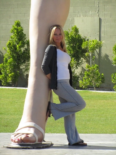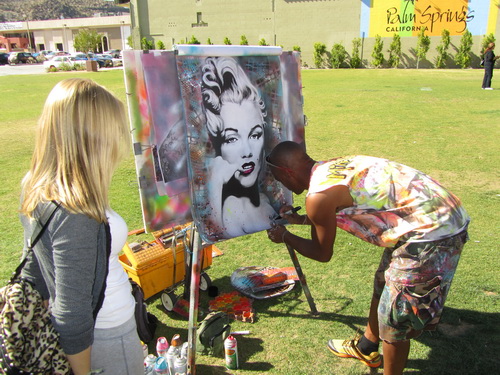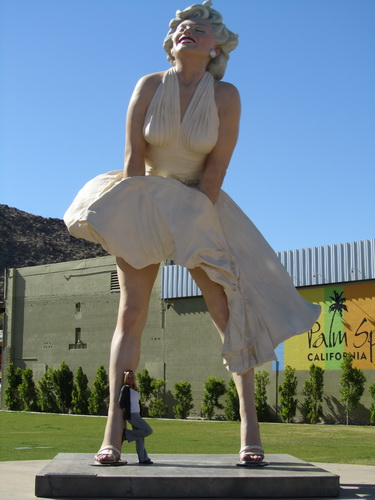 Edi stands beneath the enormous Marilyn Monroe statue on North Palm Canyon Drive