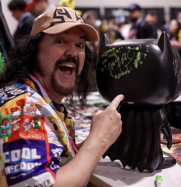 Sunday the 23rd – WHAT’S YOUR NAME AGAIN?! – OR – THE NAME GAME! – For me, Sunday was more fun than Saturday at the convention. I had the chance to do some running around and exploring. The day started with a young guy named Dominic who came to my table to get a Renji Funko Pop signed for his mom. I asked where his mom was, and he said she was a vendor at the show and was tied down to their booth. So I grabbed Officer Mark and Dominic and told him to show me where their booth was. I was going to show up and sign the Funko Pop for her in person! I’m glad I did because she was really surprised! Here’s the video of the delightful interaction with Dominic and his mom Domenica….