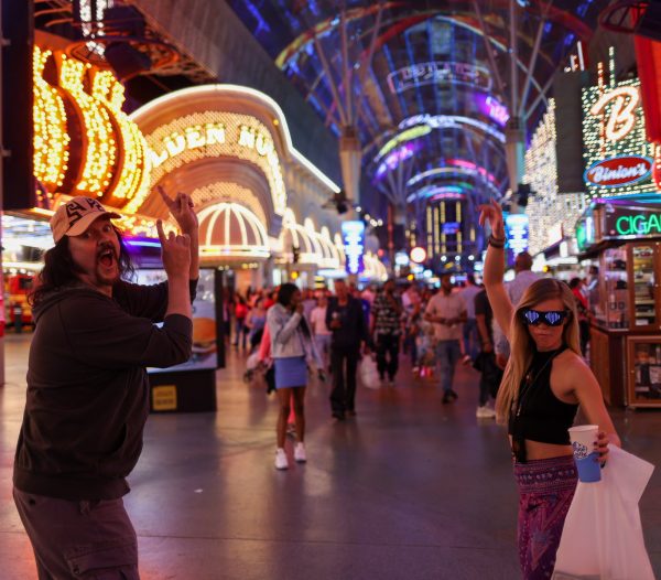 While we take a break on Fremont Street in Las Vegas, Amanda shows off the cool new digital glasses she bought.