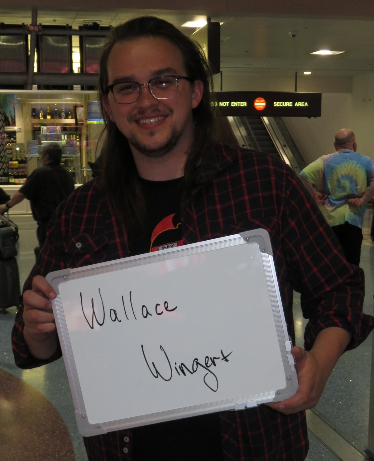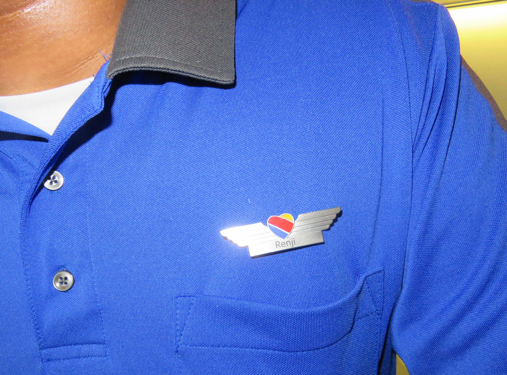 They were just delightful people and I’m glad I met them. Then one of the best Renji cosplays I’ve ever seen came to my table. Her name was Skye and she did, what I call, “Rehab Renji.” It’s how my character Renji looks after he’s been in a serious battle. She had the robe tied around her waist, and her chest was bandaged up. But she went through the entire process of having Renji’s profuse number of body tattoos faithfully recreated all over her body. It was amazing, and certainly took a lot of work! Absolutely fabulous! I took part in a panel discussion about the show “Naruto,” an anime show that I’ve only had small parts in from time to time. In addition to not knowing very much about the series, it was very hard to hear the other panelists because there weren’t any stage monitors. But we managed and we had a lot of fun. Then I headed back to my table to sign for a bit, and then I went to lunch. When I finished my lunch I stopped over at the karaoke stage and sang “Twist and Shout” by the Beatles. But many of the kids in the audience didn’t know what the song was, or even who the Beatles were. But at least it was fun for me! I went back to the table for a bit, and then we did the huge “Bleach” panel in the main hall. It was hilarious! We had about NINE cast members from “Bleach” on the panel! It was never a dull moment. When we were introducing ourselves to the audience, many of the Voice Actors were also introducing themselves as Johnny Yong Bosch, the star of “Bleach.” It turned into us all changing the name on our name plaques to Johnny Yong Bosch. Hilarious! By the time the panel was over there was only a few more hours left in the show, so I did some final signing and posing for pictures and then we all got packed up to leave. The majority of the actors were heading back home that night, but a few were leaving the next morning. Amanda checked the flights on her phone and found out that hers would be on time, but mine would be delayed almost an hour! Not sure what’s going on with Southwest these days, but if they don’t get their stuff together, they’re going to have real problems. Officer Mark caught an Uber back to the hotel, because he’d be leaving on Monday morning, but our van took us straight to the airport. We got checked in and everything was good. Since we had a lot of time before take-off, Amanda and I went to grab a bite to eat in one of the restaurants on the concourse. I saw her off as she boarded, and then I headed over to my gate. I just waited and people watched for a while. I watched the estimated time of takeoff for my flight move a little further and further behind. I was hoping all was going to be OK. Our flight was packed, and some of the other Voice Actors were also on the flight, including Johnny and Michelle. I was very close to the front in the boarding group, so I had my pick of seats when we got onboard. I decided to head back to the exit rows and pick an aisle seat there. I started kibitzing with one of the flight attendants who was a cool guy. I assisted a woman with the stubborn handle on her luggage that wouldn’t retract fully. I got it to retract and lifted her luggage into the overhead compartment. When the flight attendant came back to the exit row folks to do the usual “you’re sitting in the exit row and you have responsibilities” speech, he said his name. RENJI! I said, “Scuse me, WHAT’S your name?” He said his name was Renji. I couldn’t believe it! I told him I had just spent all weekend signing photos at a convention featuring my character RENJI from the “Bleach” anime! Unbelievable. It’s one of those little comical things that life throws your way to keep us amused! He said we needed to get a selfie together later. I couldn’t wait to tell my fellow “Bleach” cast members about the amazing happenstance when we got off the plane! I spent the short flight talking to a guy next to me whose name was Pedro, and he was an accountant in L.A. He asked me all sorts of questions about the field of Voice Over and what our lives were like. As I was disembarking from the plane I took a picture of Renji’s name tag. NOBODY was going to believe this! As we got to the baggage claim area I told Michelle and a few of the other Voice Actors about our flight attendant. They couldn’t believe it either! Just then, Renji and the rest of the flight crew walked through the doors to get their ride to their hotel. We started chanting “Ren-ji! Ren-ji! Ren-ji!” He burst out laughing and the other flight attendants started shooting video on their phones. He asked if we could do it again so he could shoot it on his phone, and I said, “Hey. We’re actors. We have no problem performing on command.” So we shot a nice video for him and, I believe, totally made his week! Just another one of those weird things in life that leaves you shaking your head. I mean, WHAT ARE THE CHANCES!? I got my car from the valet and headed back home to unpack and unwind. What an amazing time!
