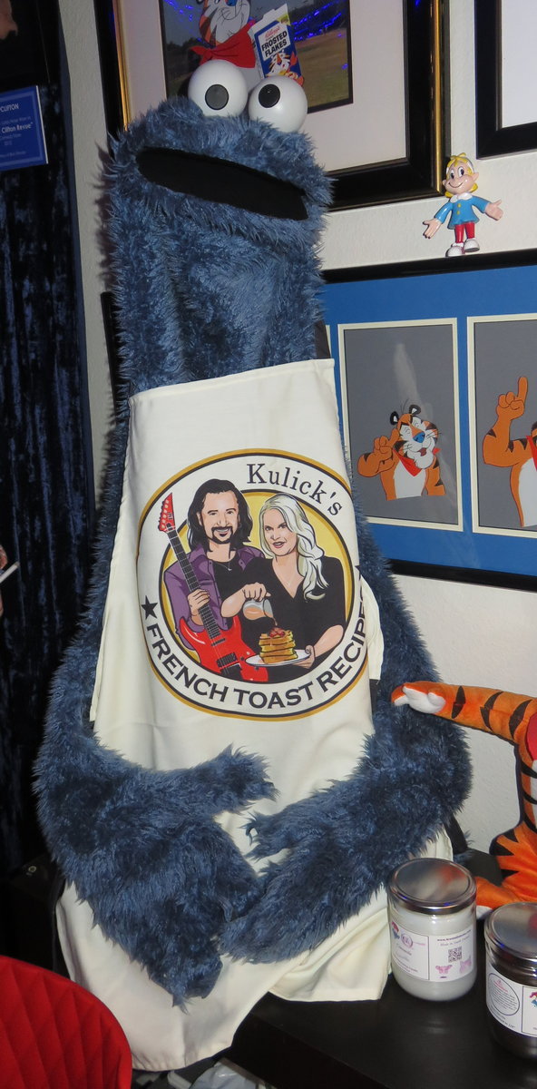 I got this great apron from my buddy Bruce Kulick and his wife Lisa, who are releasing their recipes for everything from pancakes to French toast! But Cookie Monster is still waiting for their delicious cookie recipes!
