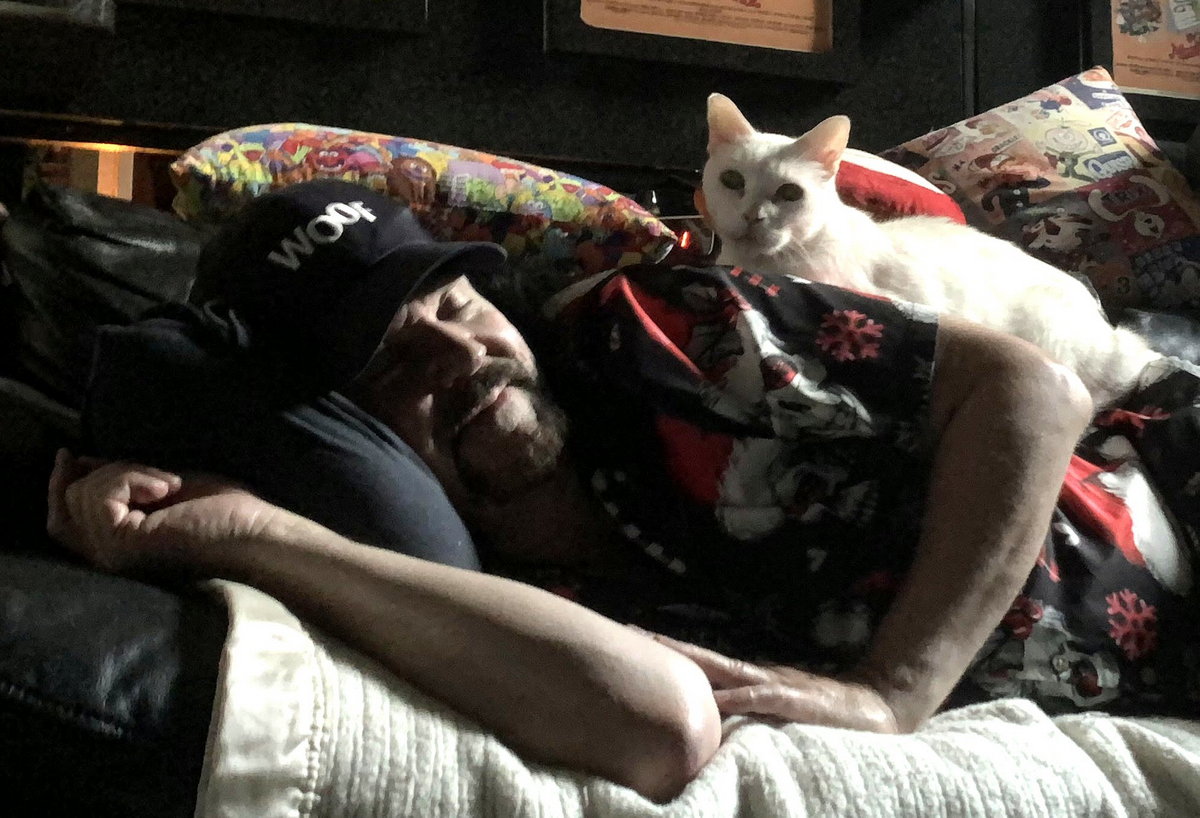 Sabrina managed to snap this shot of Spook using me as his mattress. Not quite sure why Spook wanted to lie on me like this, as it couldn’t be very comfortable. But it sure was funny!