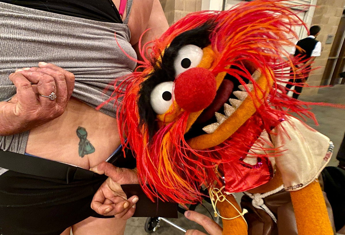 Animal a ‘crack’ addict? Hardly! But this kind lady just had to show me her Kermit tattoo! She said she’s had it for decades!