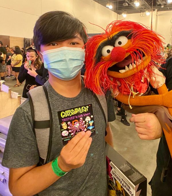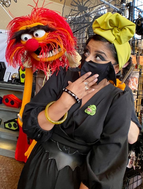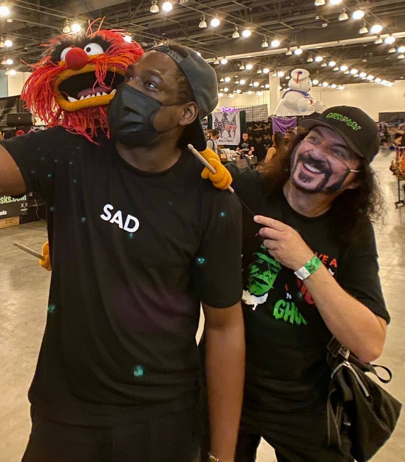Saturday the 14th – USING AN ANIMAL AS BAIT! – For a while now my pal Joe has talked about embellishing a one-of-a-kind Elvis sport jacket he owns with some sort of nail head studs or rhinestones. I encouraged him to meet me at Kit Kraft to get some supplies for his project before it was too late. I walked over to meet him and we consulted with their staff about the best way to approach his project. He decided that two different kinds of nail head studs would look great as trim around the cuffs and the bottom of the jacket. I walked over to the grocery store to get a few items for dinner, and then headed back home to clean up for guests. My friends Aliza, Cecille, James and Brian were coming over to hang out for a bit. Since I stopped doing movie nights at the start of the whole virus thing, everyone has missed seeing each other. So once we all got assembled we hopped into James’ SUV and went to Lancers for a nice dinner. What fun! It was great catching up. When I got home I turned my attention to a convention I’d be attending on Sunday to promote my Christoween project. As I was walking Roxy out the front door to take a potty break, I looked over and saw Oscar the Grouch in his trash can. I thought that maybe a good way to engage potential Christoween fans would be through a Muppet! I could take Oscar, but being a ‘live hands’ puppet he might be too cumbersome. I could dig out some green fleece and make a nice Frankenstein head piece for Kermit (Franken-frog?) but it seemed too labor-intensive. My early Sesame Street monster puppets might fit in, but they’re not recognizable enough. So it was down to Gonzo or Animal. I had just had Gonzo out at the Bob Baker Marionette Theater on my birthday, so I figured Animal would be the best choice given the type of audience who attend monster cons. He would be a huge draw as my pal Officer Mark and I hand out promotional Christoween magnets to create awareness for the brand. I laid out all my stuff for the next day, and I realized that I need a much better ‘puppet travel’ bag!
