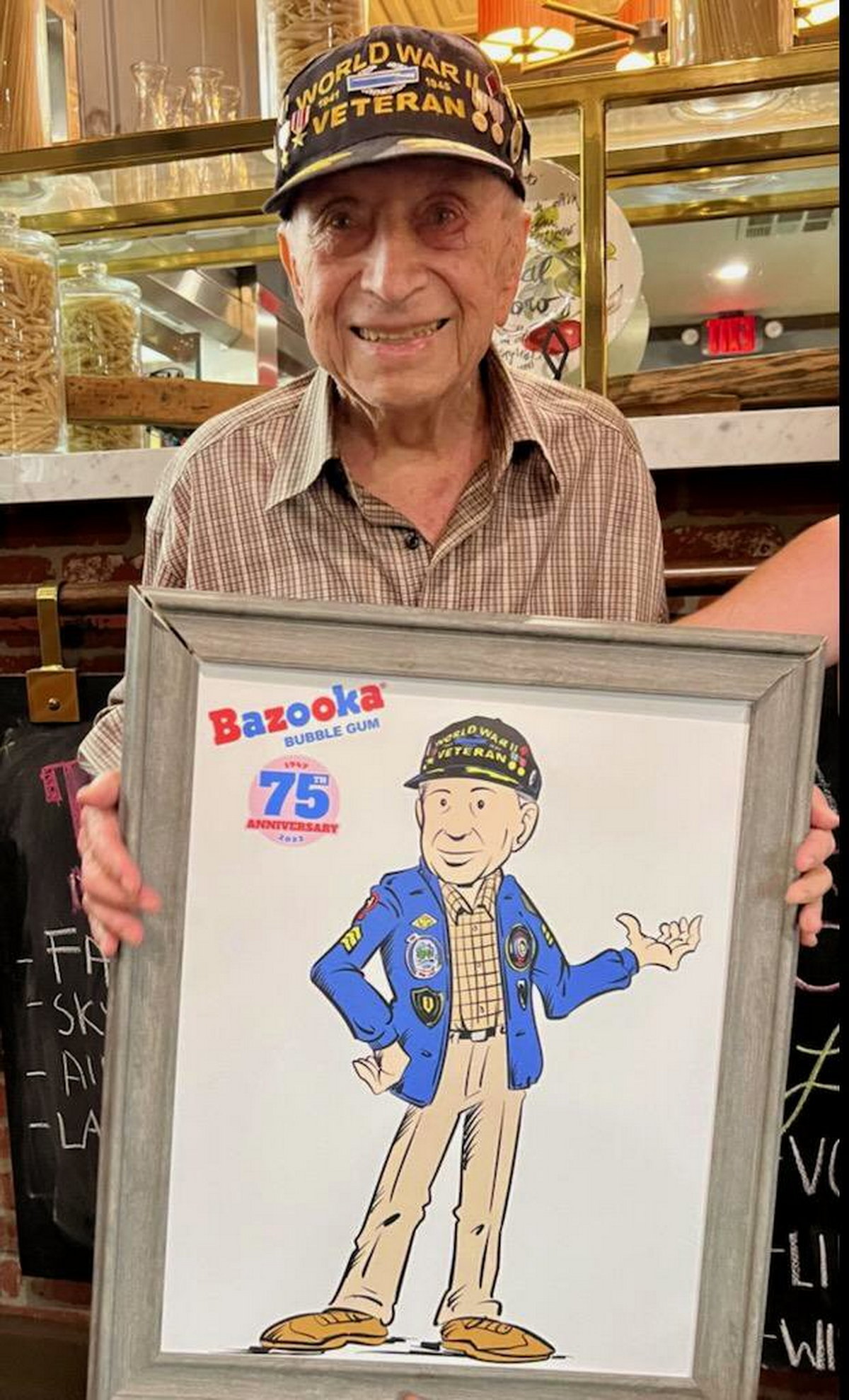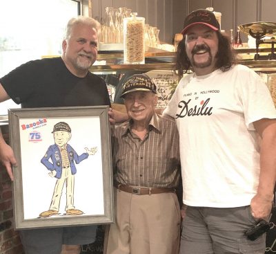 As you can see, WWII vet and 103 year old good guy “Bazooka Joe” LOVED the caricature Dan Roebuck presented to him.