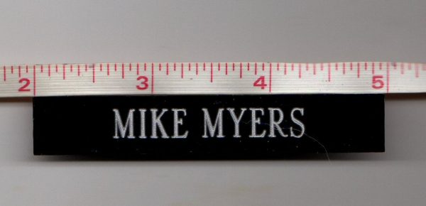 Though it took some detective work, and many e-mails and phone calls, I figured out what this type of engraved sign was. Many years ago, when I was setting up my The Chaney Room in Planet Wallywood, I had hung a number of celebrity life masks on my wall. I had name plates engraved for each of them by a company called Aahs. Since I just acquired a Paul McCartaney life mask last week, I needed to have a new name plate made up that matched. But nobody seemed to know what kind of plate it was. After much back-and-forth with the company that Aahs has now become, we finally figured it out! It’s engraved into black plastic from the back, and then a silver paint flood fill is added into the lettering. Whew! So now I have matching signage arriving soon!