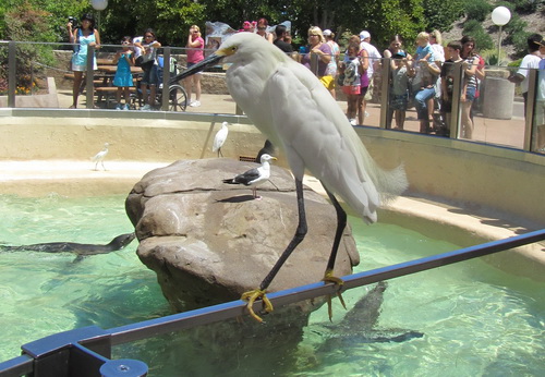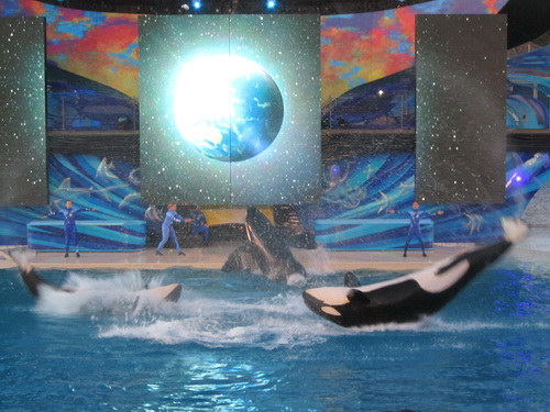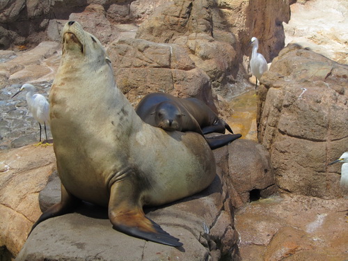 Thursday the 25th – SAN DIEGO DAY 2! – When we got up in the morning we noticed that Brittney’s cough had gotten worse. So I called my doctor Dr. Patt in Santa Monica and told him of the problem. He phoned in an emergency prescription for Brittney so it wouldn’t get any worse. It was back to Ralph’s to pick up the prescription, but while we waited we had some lunch. We got to Sea World (my favorite amusement park!) around noon. We paid the extra money for Premiere Seating and it’s worth it! It’s only about 24 bucks, but as I was buying our tickets some nice lady came up with a coupon for $20 off admission, so our Premiere Seating was virtually free! This allows you sit in reserved seating at all the shows. Perfect! After we got in we headed right for Rocky Point Preserve where the dolphins frolic around. Then we went to my favorite attraction at Sea World. Feeding the sea lions. When I went last year I spent literally hundreds of dollars on fish baskets to feed the sea lions. For 5 bucks you get a tray of 5 fish that you can feed to the sea lions. I started off with 90 dollars worth, gave Brittney and Edi some baskets and we commenced feeding the sea lions. We all had our favorites. Mine was the one who would look at you and shake his head “yes” until you threw him a fish. Edi fell in love with an older sea lion that was blind. His eyes were all white with cataracts, but he would sit in the water up to his neck and wave his paw until somebody threw him a fish. Though he couldn’t see it, he could hear it hit the water and then he’d dive in after it. We named him “Stevie” in honor of Stevie Wonder. One of the big, older sea lions was just lying on a big rock sleeping. I wanted to make sure he had some fish too, so I threw a few fish his way. But he didn’t respond and the fish went to some of the other sea lions. I accidentally overthrew a fish and it landed right on his back. He didn’t budge, but one of the other sea lions grabbed it off his back. This shocked the big, old sea lion a lot and he opened his mouth and let out a loud howl in protest. It was so funny! The younger sea lion who grabbed the fish just laid his head on the back of the older sea lion as if he just realized how comfortable laying on the back of the old sea lion was. I also loved feeding the egrets, who were hovering around hoping to fly in and steal some wayward fish. We went to the dolphin show and enjoyed sitting in Premiere Seating. Then we went to see the Beluga Whales, and I bought Brittney a little stuffed Beluga that we named “Lew” (be-LEW-ga). We went over to see the penguin exhibit. There was an attendant standing amidst the penguins feeding them and talking to the people about penguins. One little penguin liked this lady a lot and would stand right in front of her and not move. He was clearly quite attached. She bent down, put her hands out and wiggled her fingers. This was an indication to the penguin that it was time for scratchies! The penguin would stretch up his neck so she could put her hands on either side of him and scratch his neck. He LOVED this! We decided to name him “Scratchy.” We saw an African Porcupine and Edi petted him…carefully! Then we went to the Smokehouse and had some late lunch. We went back to the sea lion exhibit and fed them some more fish. While we were there asking the attendant a question, another guest came up in an urgent manner and told the attendant that some girls were feeding beer to the sea lions. We went over there with her and found three drunk girls trying to pour beer into the mouths of the sea lions. They lied and told the attendant they weren’t doing it, but it was obvious to everyone around them that they were. Brittney said, loud enough for them to hear, “You can take the girl out of the trailer park, but you can’t take the trailer park out of the girl.” Just then a little girl came up to the drunk girls and said something about going to the dolphin show. I looked down and said, loud enough for them to hear, “Oh dear God…it reproduced!” Brittney, Edi and I aren’t very fond of those who would abuse animals like that and I think we made our point. One of the best shows at Sea World is the Sea Lion and Otter show. The emcee is very funny, but the absolute funniest thing happened at the end of the show. At the end of every show, Clyde and Seymour swim up to the edge of the plexiglass, pop their heads up and give a loud sea lion shout out to the audience (as if to say “thanks.”) Well, a woman and her 3 year old blonde headed son wanted to get out of the show a little early to beat the exiting crowd. But her timing sucked. She got down the stairs and up against the plexiglass wall just in time to have Clyde pop out of the water and start howling. It shocked her, but the little kid jumped back about 9 feet! All the kid saw was this enormous sea lion popping up out of the water about 2 feet from him and blurting out a loud sea lion roar. The entire stadium started busting up laughing. I was laughing so hard I was in tears. You couldn’t WRITE this stuff! I told Edi and Brittney that his mom better check his diaper because it was no doubt full! We headed over to the Shamu show, and then headed back to the car. What a fun day! We got back to the hotel and went down to the 21+ jacuzzi, but we realized with horror that it closes at 8! We went to the regular jacuzzi and met up some some great folks from Ohio, who originated from Lebanon. We were too tired to go out to eat, so we ordered food from room service and we just relaxed in my room. Over the course of the day, Brittney’s cough had gotten MUCH better. THANKS DR. PATT!!