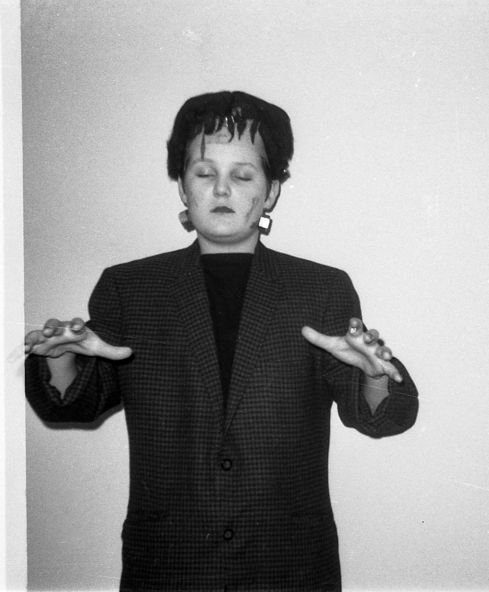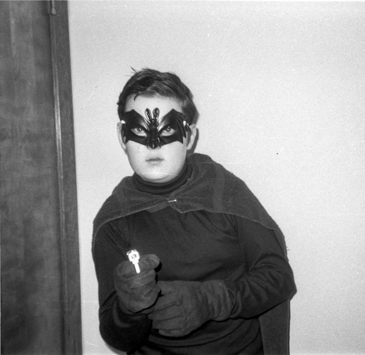 My saintly mom had no problem blowing through a roll of film whenever I got the urge to do some make-ups and characters. These are just a few of my favorites from back in the day. An ape (made with silly putty), my original character The Black Bat, Captain Kirk, Frankenstein (made with a coffee can lid and a rubber swimmer’s cap), and James Bond.