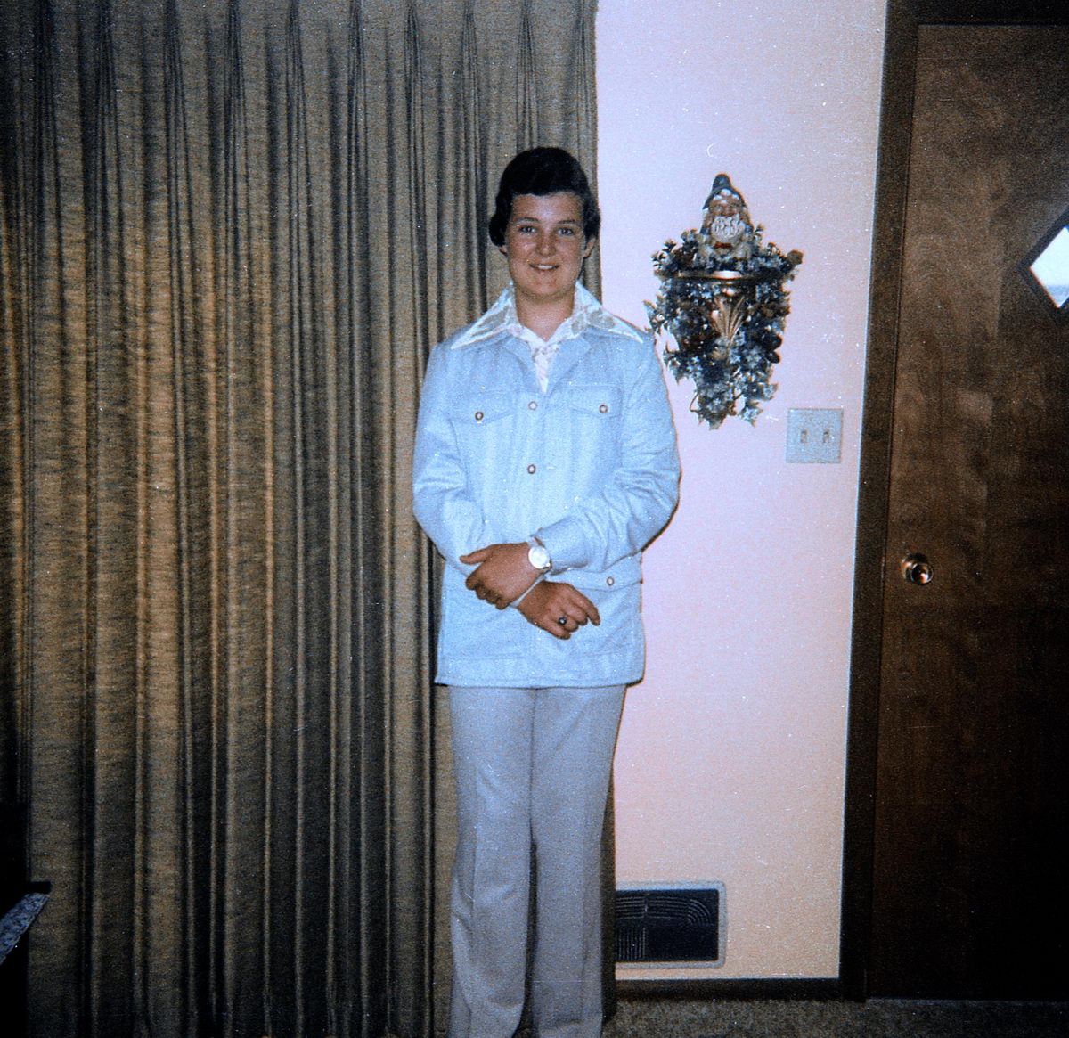 When I was prepping my Andy Kaufman act for the high school talent show back in 1977 I had my dad take some costume test shots.