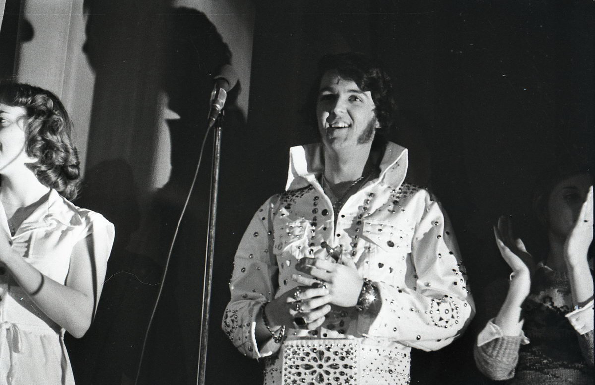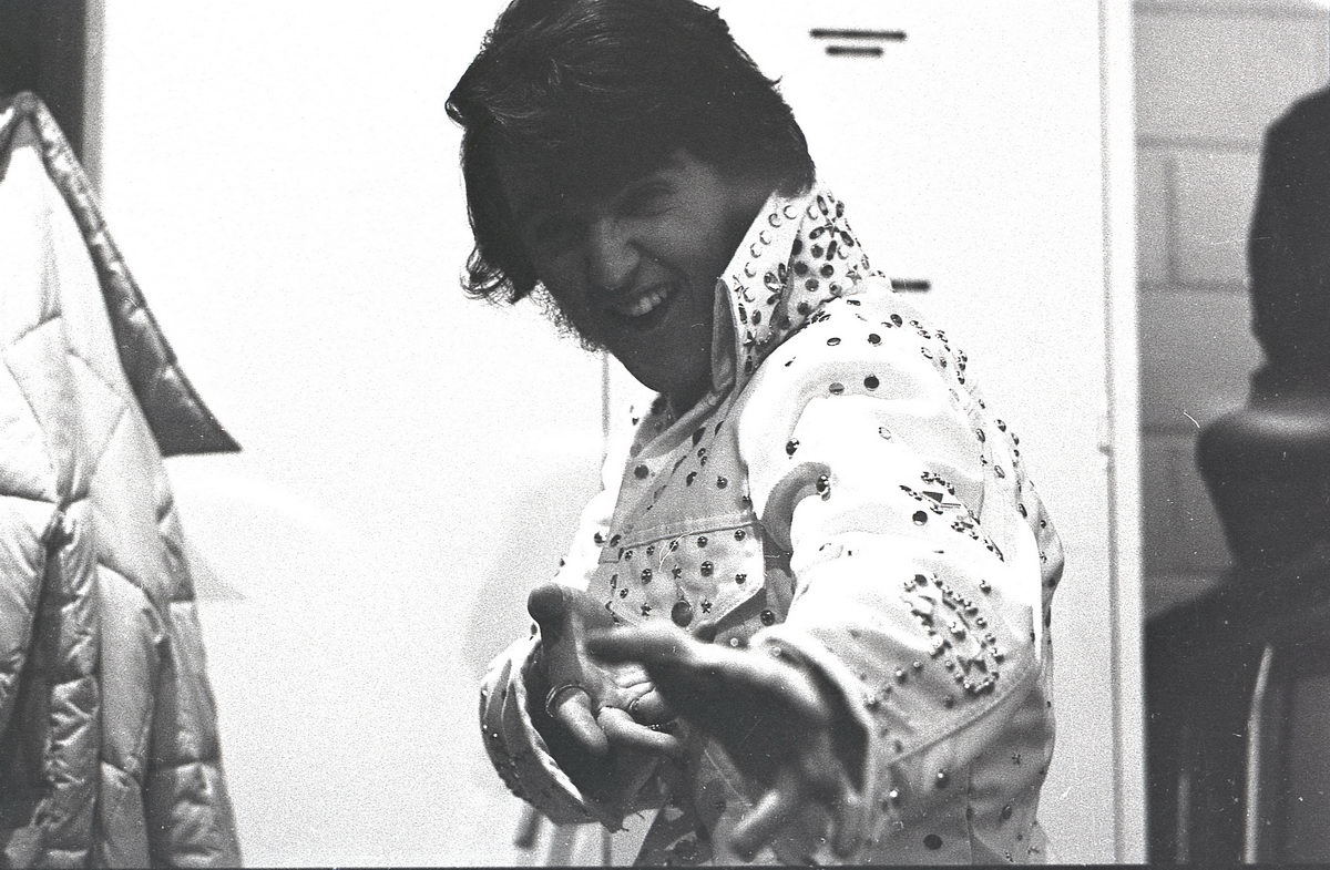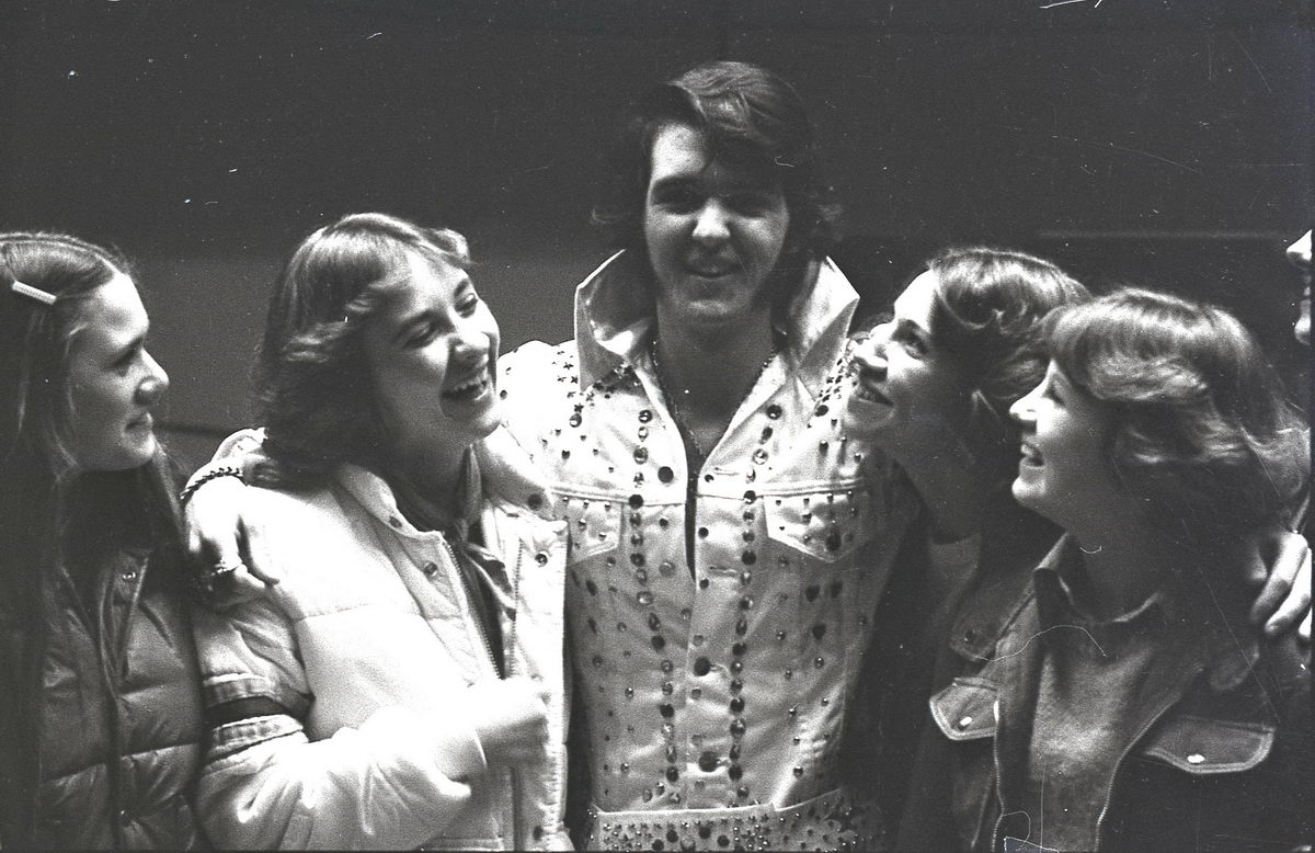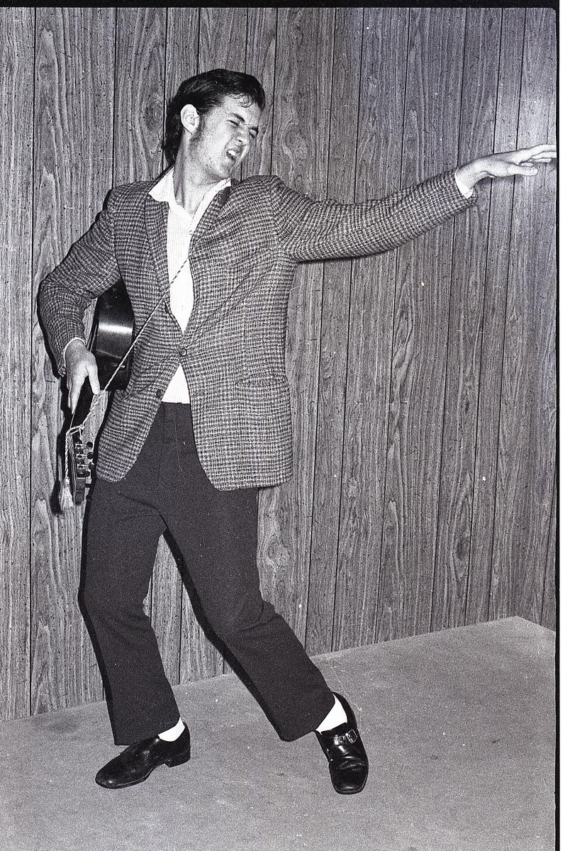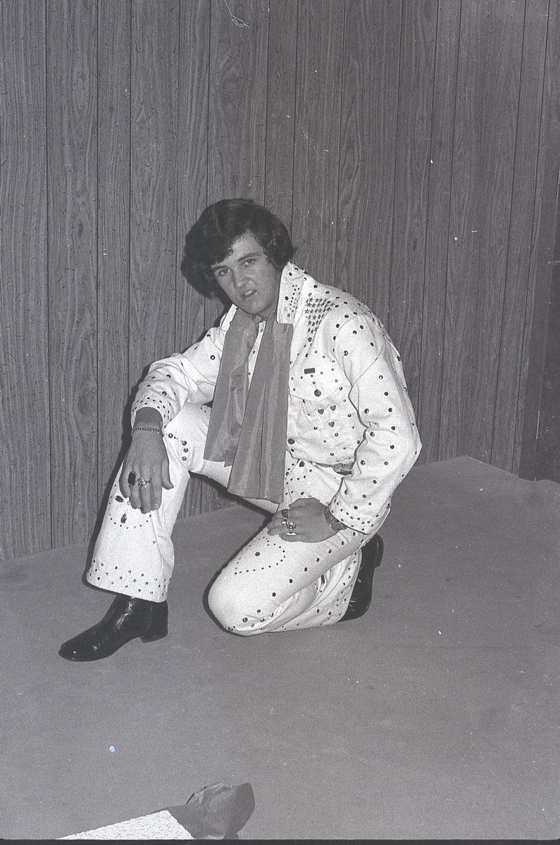 When our group did our tribute to Elvis at our high school talent show, it just so happened that the student teacher in our Radio & TV class was an accomplished photographer. So I asked if he would shoot some photos of the performance. He got some great shots during the show, but now in retrospect, I find that my favorite shots from his roll were the backstage stuff with my friends. These bring back such great memories!