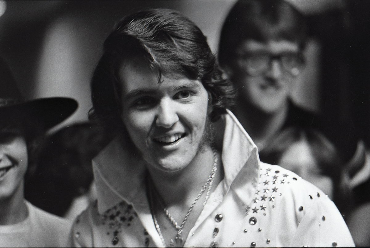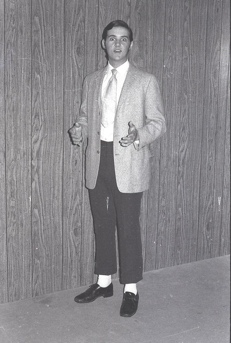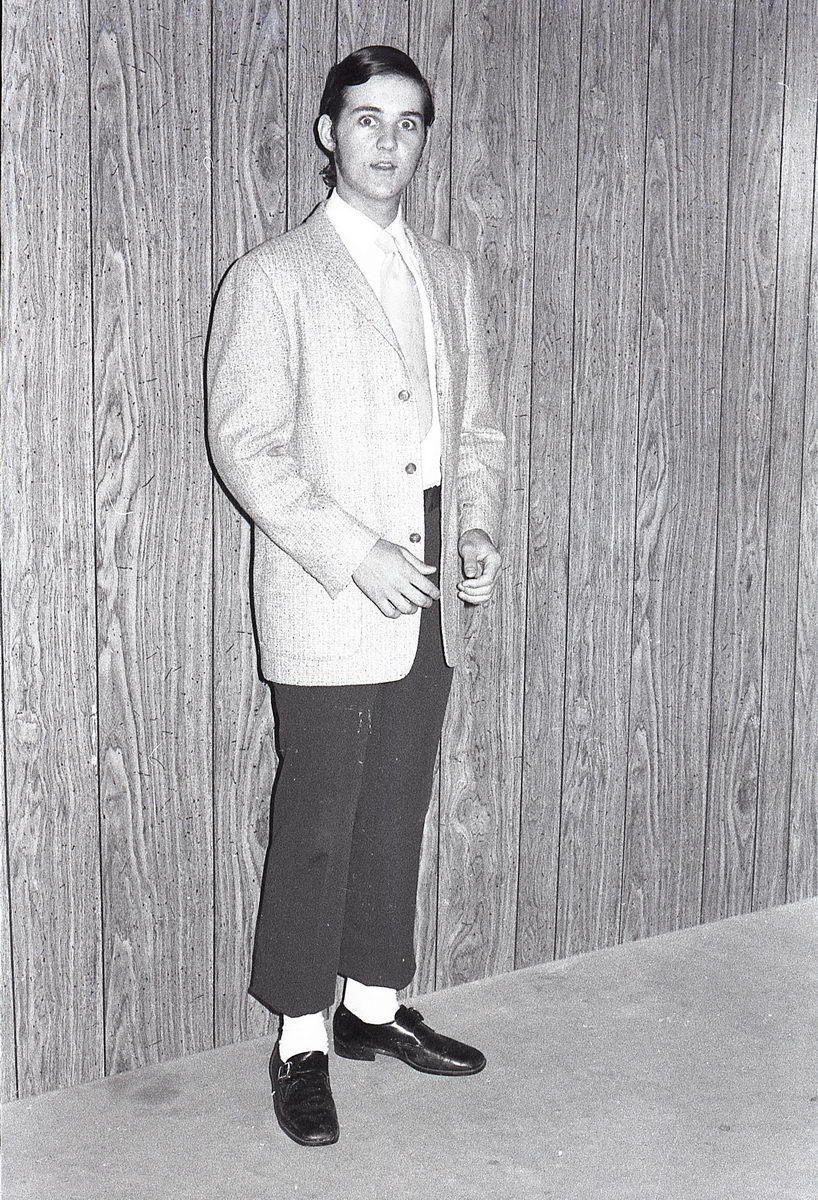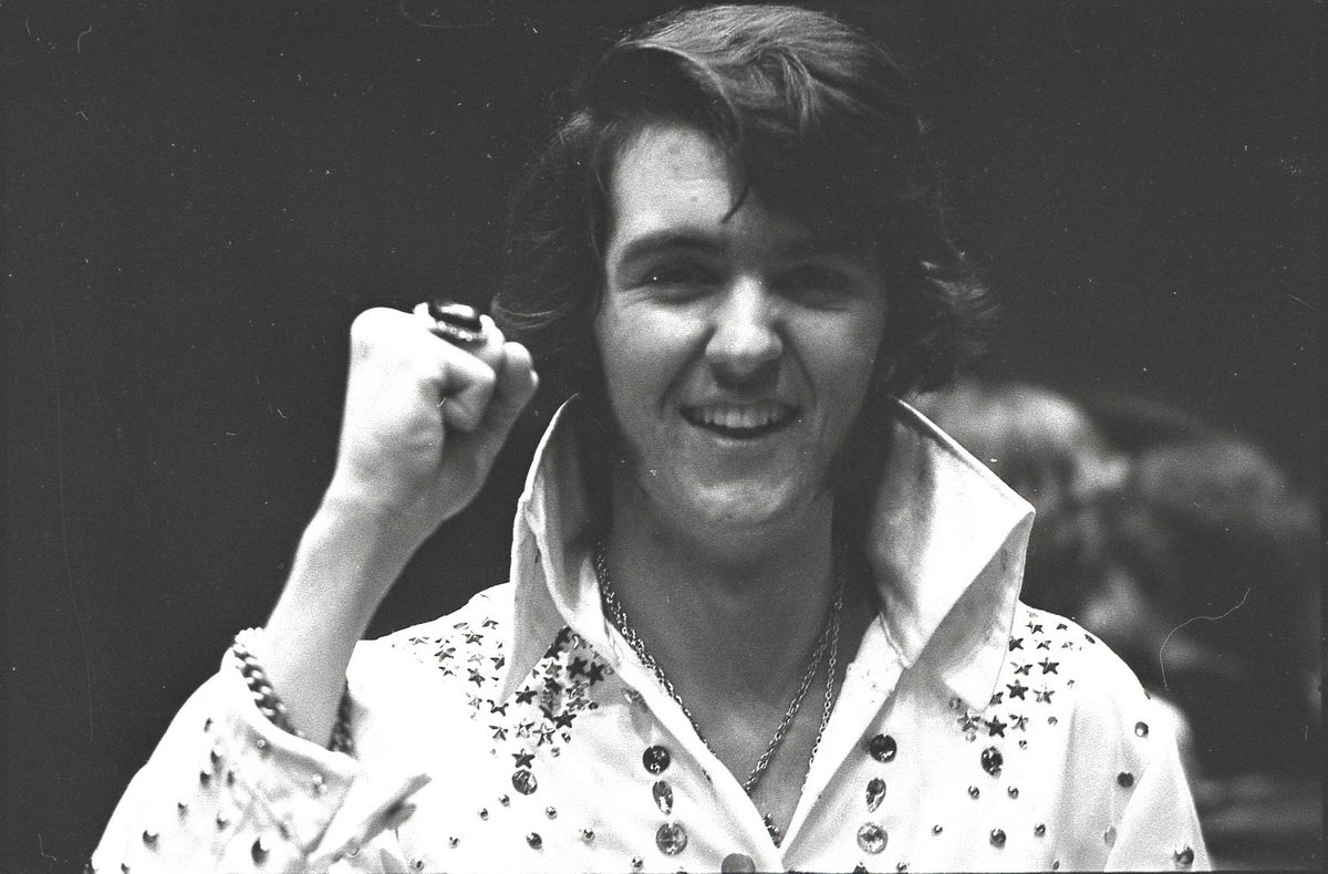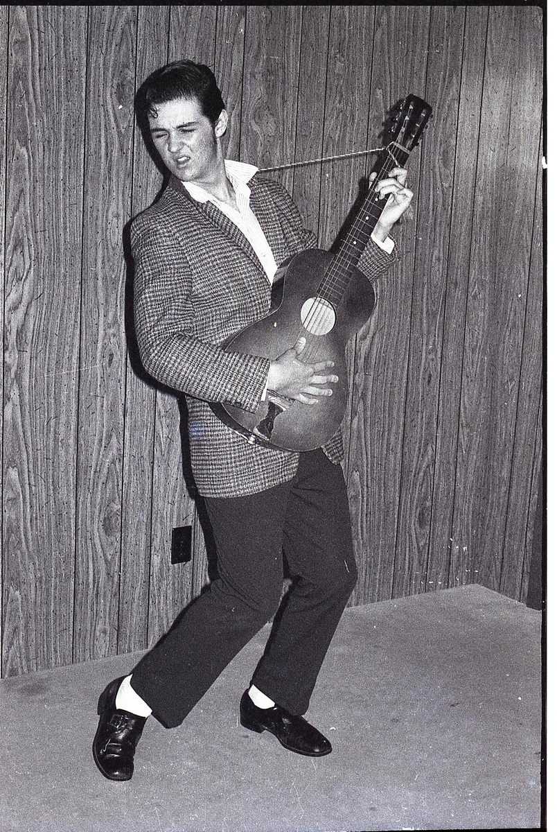 When our group did our tribute to Elvis at our high school talent show, it just so happened that the student teacher in our Radio & TV class was an accomplished photographer. So I asked if he would shoot some photos of the performance. He got some great shots during the show, but now in retrospect, I find that my favorite shots from his roll were the backstage stuff with my friends. These bring back such great memories!