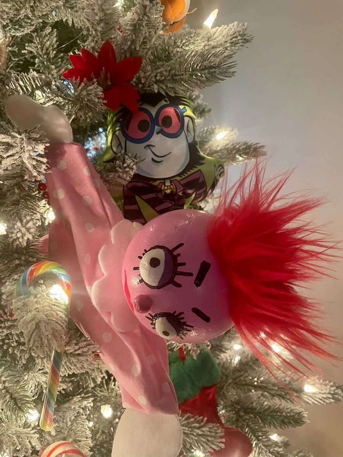 And Sam prepares his Donnie plush for a very special place in his Christoween display!
