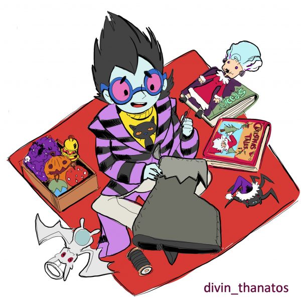 Here’s a great piece we received last year that we thought deserved another look this year. Divin_Thanatos mixed worlds by showing the Tallest from “Invader Zim” opening up a box of Christoween gifts, including a Donnie Druthers® plush toy!