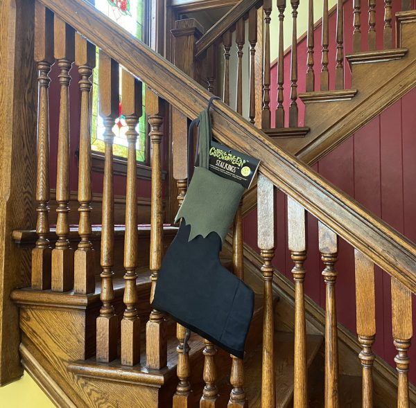 Keller proudly displays his Frankie Christoween Stalking® on his beautiful staircase!