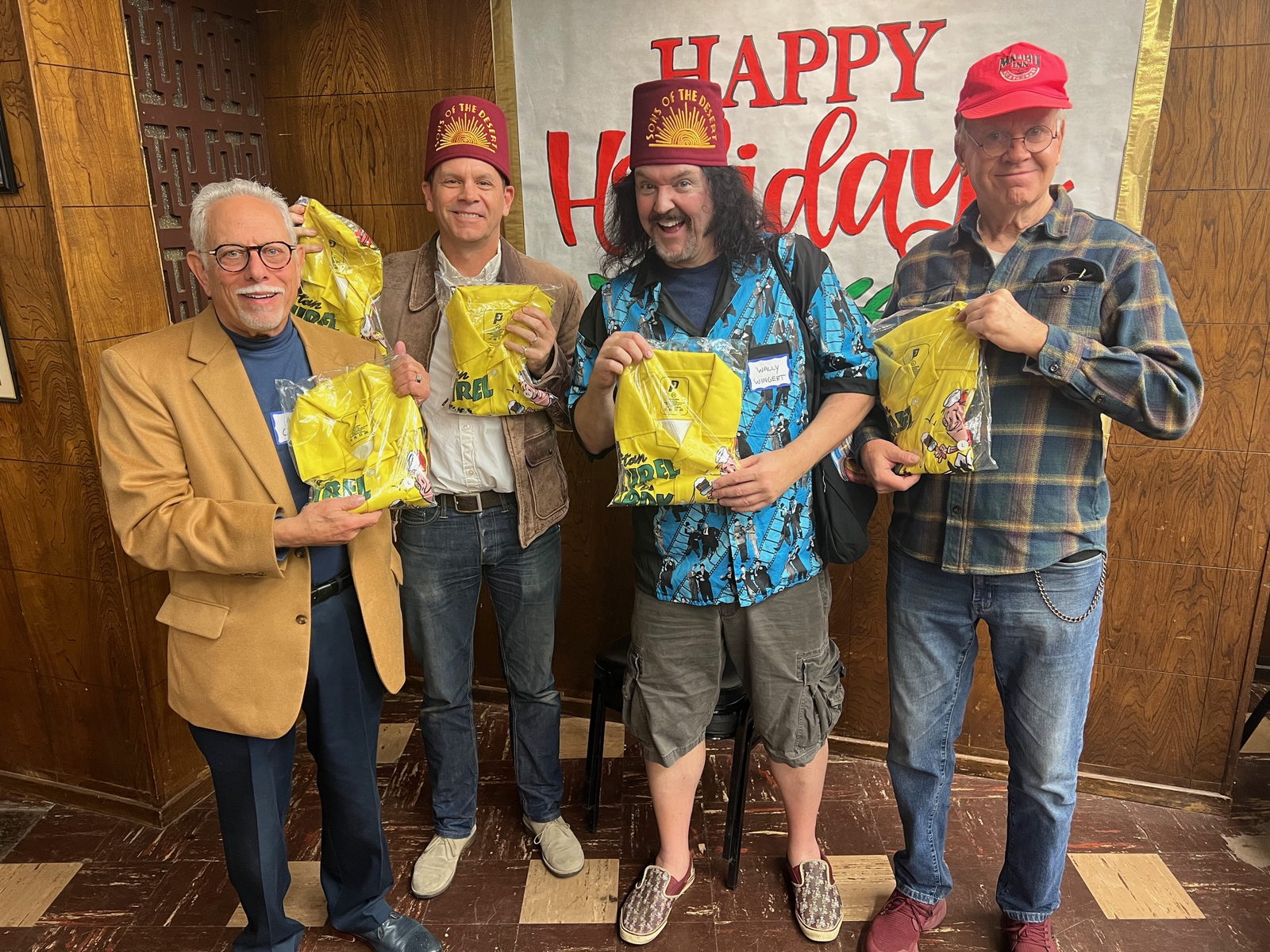 Tuesday the 3rd – LIGHTING LUNACY! – Since I had the afternoon free, I decided to hit up a local lighting place to see if they had any cool LED effects lighting for my Tranquility Zone. But when I got there all they basically had were light bulbs of all different varieties. Bummer. Then I headed into Sherman Oaks to visit an old light store I had been to many times before. I called them a week ago to ask if they had a specific type of rope lighting, and they said they did. When I Googled their number the listing for the business said it was “Permanently Closed.” But when I called the number listed on the page somebody answered. So I figured the internet was lying, which sometimes happens. Once I got to the store I realized that they were, in fact, closed permanently! But if the store was closed, who did I talk to on the phone a week ago? When I got back to the car I looked up the phone number for the store in my call history and gave them a ring. I asked why the call went through when they were no longer in business. He said the number in their former area code automatically transferred to their Santa Monica store, and he had neglected to mention that fact when we talked. Bummer. Talk about wasted afternoons! I got back home and got prepared for that evening’s Sons of the Desert meeting – the quarterly meeting of the local Laurel & Hardy fan club. I met my pal Dr. Cowen at an Italian restaurant that’s about two blocks from the club meeting. Just like last time, we got a pizza and got caught up on life. The SOTD meeting was really fun, and I came away with my membership paid up for 2025, a new hardcover book called “Promotional Pandemonium” (about the promotional campaigns for L&H’s feature films), and a brand new button-down shirt. The shirts had been fabricated by one of the members, and it featured artwork that promoted the upcoming international L&H convention happening in San Diego in 2026. I proudly bought one and I’ll definitely go to the convention in June of ‘26! When I left the meeting it was just before 9pm, so I decided to visit the Christmas House in Burbank. It’s a wonderful home in Burbank that’s owned by a professional lighting designer. I’ve been going there for over 10 years, and every year the show improves. The home’s owner Alan has a low-power FM station that he broadcasts specific Christmas songs through. The light show is choreographed digitally to each song, and every individual song has a different style of presentation. It’s amazing! This year his yard is even more densely populated with gorgeous, brightly-colored LED lighting effects. And the best part of all, during a specific part of Manneheim Steamroller’s “White Christmas,” it starts snowing! He installed a new “foam” snow machine. What falls is actually little bits of foam, but with the lighting he installed it makes it seem like it’s blizzarding in Burbank! Movie magic! When I got back home I began prepping for the carpet cleaners who would be coming on Wednesday afternoon. I recorded a few auditions, took my nightly WOG, and did some more prep before bed.