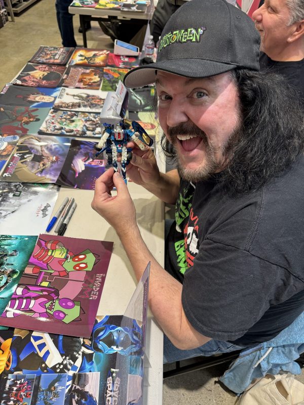 A guy brought this up to me to sign at this past weekend’s “Transformers; Robots in Disguise” signing at Things From Another World. He said he was at a movie on the Citywalk, and happened to see a poster that I’d be signing that day. So after the movie he drove back to his house, grabbed this collectible, and came back to have me sign it! Amazing!
