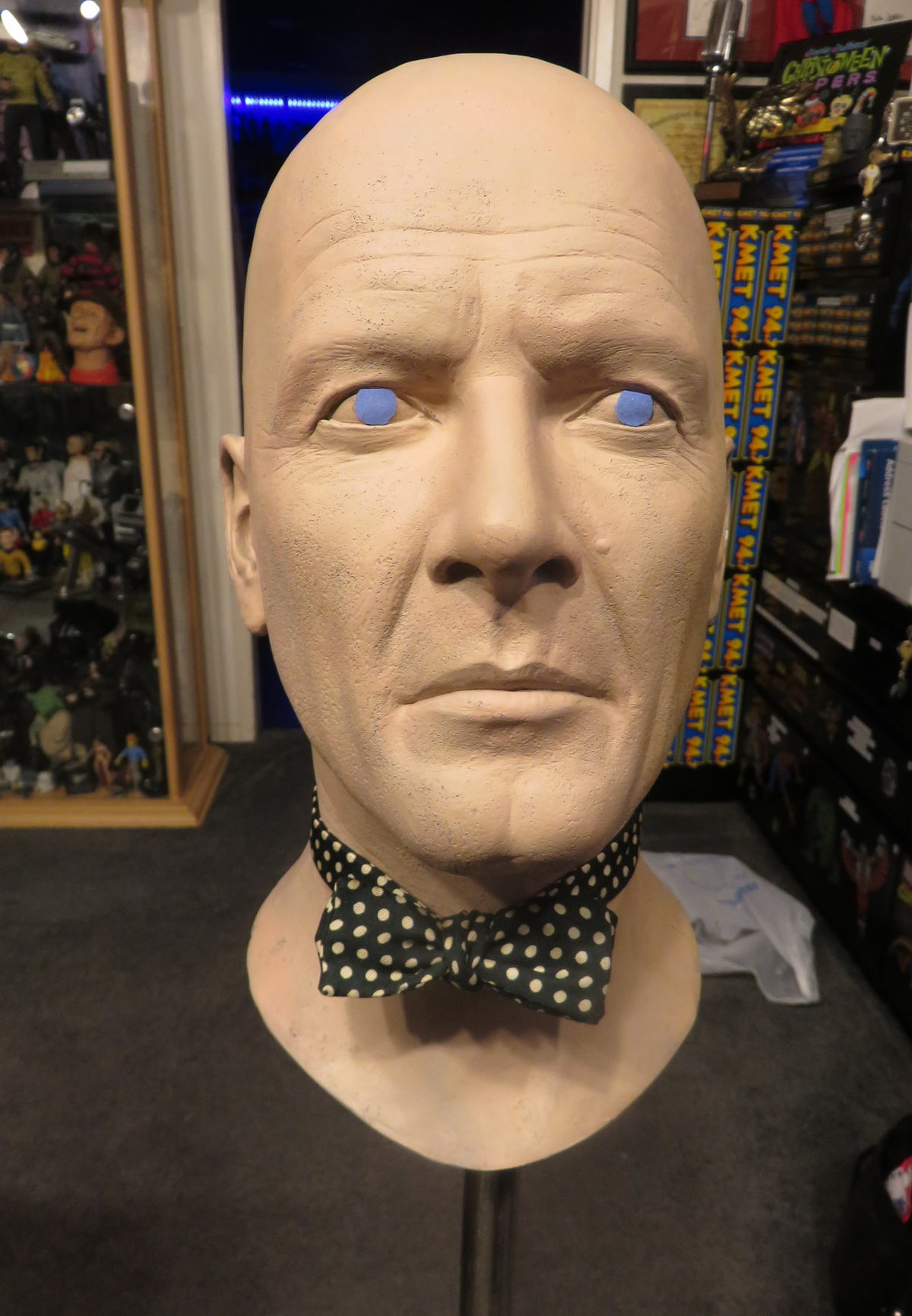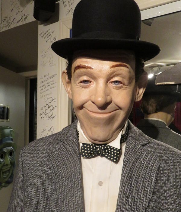 I practiced my bow tie skills on the spare Roger M00re head, and then did it for real on my life-size Stan Laurel figure!