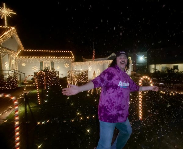 Wednesday the 24th – CREATIVE CHRISTMAS BEGINS! – Stores would be closing early since it was Christmas Eve, so I needed to get out soon and do my errands. It was pouring rain, but I didn’t care. It was actually pretty nice. After picking up some packages at my box, I went over to Paty’s to have lunch on the patio and watch it rain. It was very relaxing! I picked up a few grocery items, and then headed back home to do some work. In years past, my “Creative Christmas” projects have included building puppets, painting a night sky on my kitchen ceiling, and doing other fun stuff. This year it was embellishing my South Dakota photo albums. About a year ago, when I was visiting my parents in Sioux Falls for my dad’s 90th birthday celebration, I was given a couple boxes of keepsake photos and ephemera. My folks had started downsizing and they had separated all of the photos they had in their archives to give to each of us kids. I couldn’t believe some of the great stuff in the boxes they gave me! Photos of me as a kid. Every school photo I had ever taken. Report cards. Letters to grandma. Artwork I did as a kid. It was all amazing! Several years ago I decided to redo all of my photo albums. The photo albums I organized back in the late 70’s/early 80’s had gotten very ratty. The gum on the pages had gotten dry and all of the photos were falling out. I split all the photos in my archive into two groups – SOUTH DAKOTA and L.A.! I would tackle the South Dakota photos first, and then move onto the L.A. ones later. There were photos dating back to 1961 when I was born, and continuing all the way up to the time I left South Dakota in 1987. So I had almost 30 years of photos to go through! But I did it, and I must say – I did a pretty good job putting them all together. I separated all of the photos I had into two categories – PERSONAL and PERFORMANCE. Any photos of a personal nature went into one pile, but photos that were connected to any performing I did (plays, characters, impressions, puppets, radio, etc.) went into another pile. I would make two different sets of photos albums for each category. I laid them all out to create a certain timeline narrative to the best of my ability. I was pretty happy with how they turned out, and when I finished them up – I moved onto working on the L.A. photo albums. But that was a few years ago. Now I have all these “NEW” photos that have come into my possession, and I would have to figure out a way to incorporate them into my already-completed South Dakota photo albums without messing up the narrative. Therein lies the challenge. But I could do it. Luckily the adhesive I used to fasten the pictures into the photo album pages was something called “removable tape.” It’s double-stick tape, but unlike the permanent stuff, this allows you to unstick the photo and move it if you change your mind. It’s good stuff! I took all of the photos my parents gave me, along with some news articles and other ephemera I had unearthed in the mysterious storage bin, and started organizing and inventorying the materials. I spent most of the afternoon doing that, and it was a blast. I found some GOLD! I streamed “Christmas Across The Lands” on my computer while I worked. In my home’s entertainment center, my receiver is set up to send audio to every room in the house. When I moved in back in 2000, I had an A/V guy send wires all through the house that connected to the receiver. So whatever is playing on the main receiver goes to the Puppet Room, the Chaney Room, and my main bedroom. Each room has their own individual audio controls. I like to have “Christmas Across The Lands” playing all through the house on Christmas Eve and Christmas Day so I can hear the show no matter when room I’m doing work in. I knew the photo album embellishment project wouldn’t be just a one night affair. It would most likely take me through the entire Christmas-to-New Year’s week to finish it. But I made a LOT of headway the first night. It was an absolute blast. In situations where I feel the photo or article needs a bit of explanation or commentary, I’ll sit down at the computer and print out a bit of text that I can post along with the image in the photo album. What a blast! I took my nightly WOG on a quiet Christmas Eve night, and then went back inside and continued working through the night. As the sun began to rise on Christmas morning, I called it a night and continued with my “Creative Christmas” tradition. I made a Chef Boyardee pizza-in-a-box, and head to bed to watch something special. Last year it was a few Muppets Christmas specials. This year it was the Charlie Brown and animated Grinch specials. I never get tired of those! Pure brilliance! What a fun Christmas!
