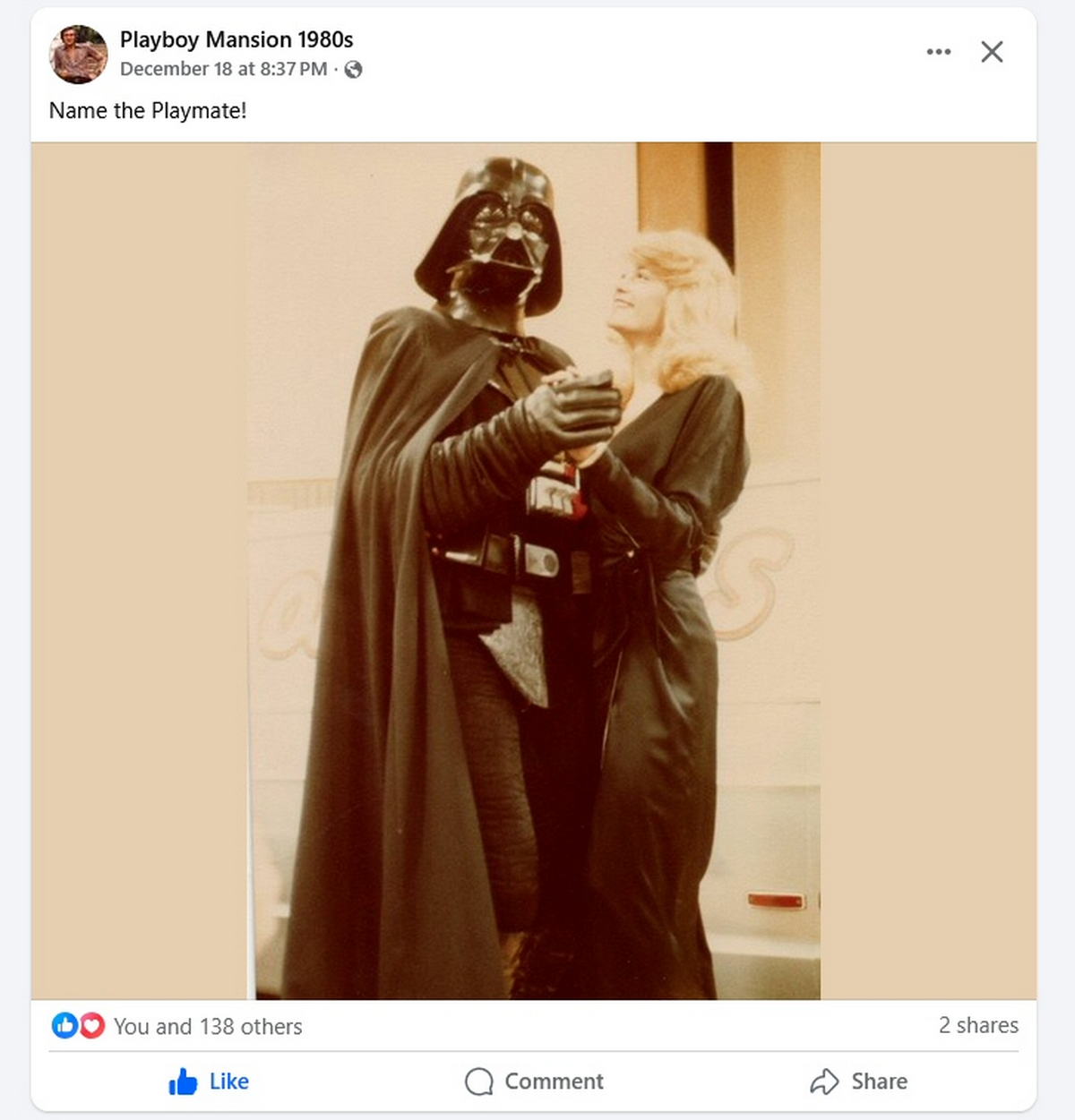 I was elated when an old picture of mine showed up on social media recently. Good times! Me as Darth Vader with Playboy Playmate Missy Cleveland at an auto show back in 1981!