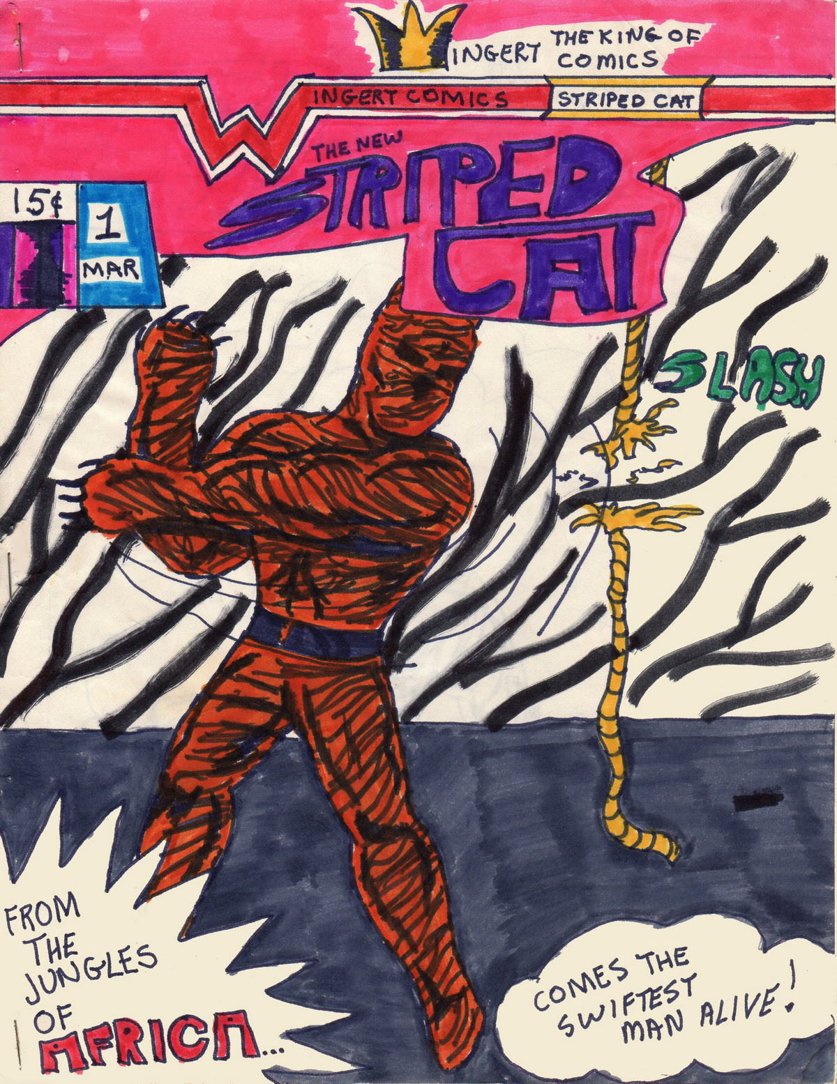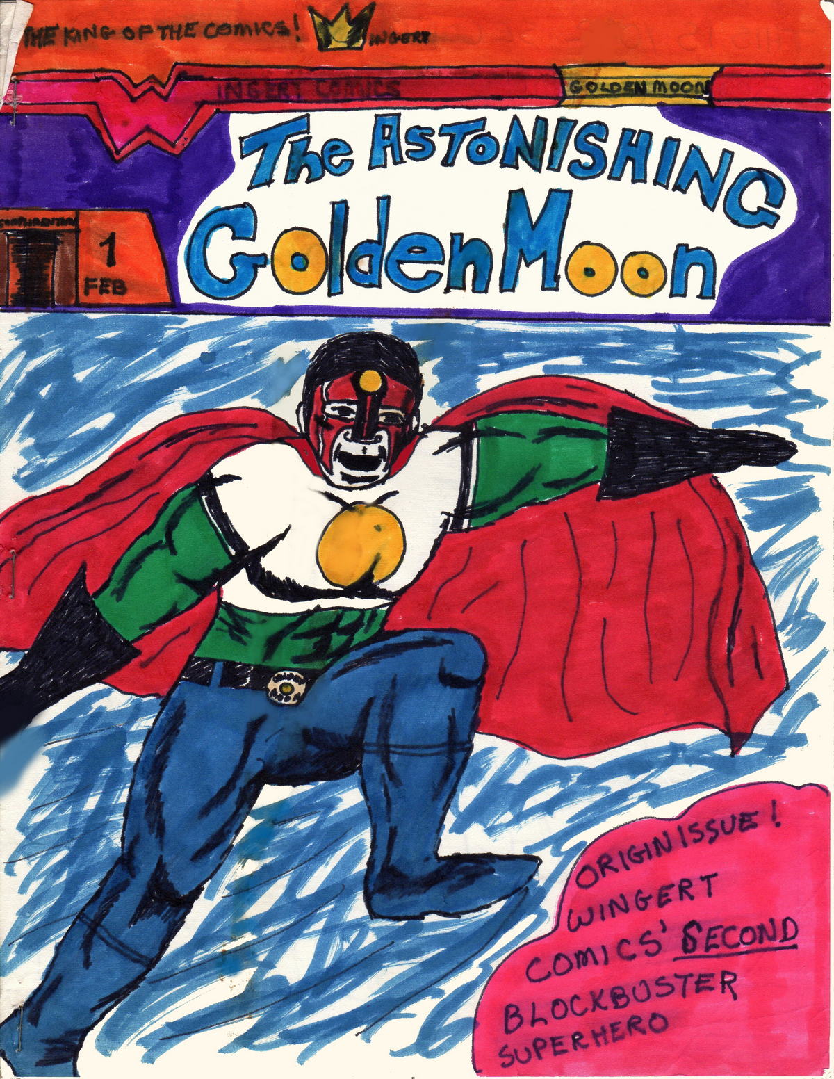 When I was 13 my friend Jon and I started our own comic book line. Mine was Wingert Comics; the King of Comics. I wrote and drew three issues, and these are the covers. I had plans to do more characters, but life moved on. Luckily, I found all three issues in my storage stuff, and they are now safely archived.