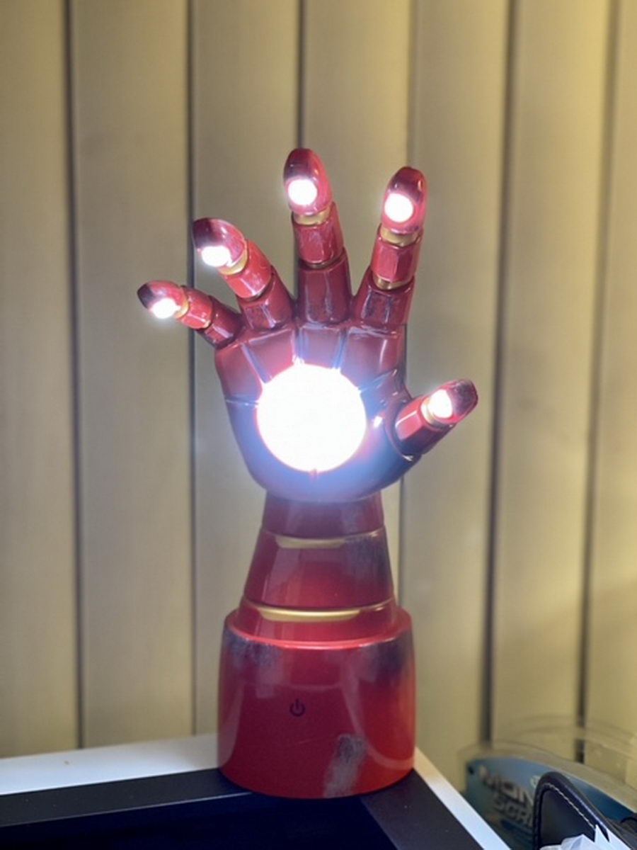 Mr. Awesome got me this cool Iron Man gauntlet lamp for Christmas. It’s very cool, and I’m giving some thought to where it might be best displayed in Planet Wallywood!
