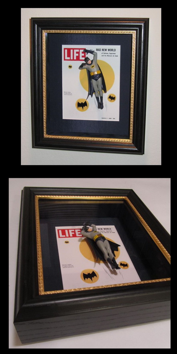 Here’s how the finished Batman ’66 Christmas ornament piece turned out. In the bottom photo you can see how far away from the background the figure is “floated.” It gives it a real 3-D effect!