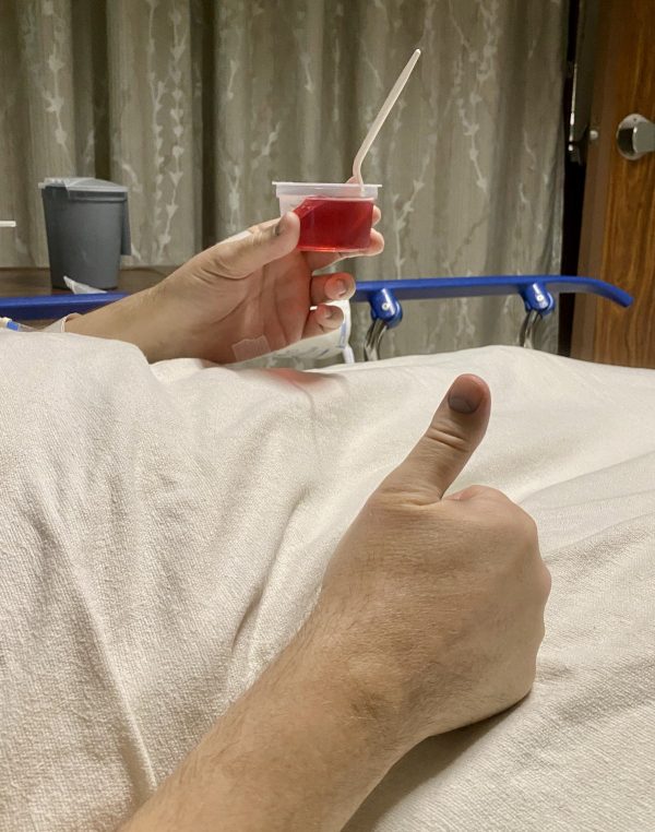 Friday the 6th – WELL THAT DIDN’T GO AS SMOOTHLY AS I HAD HOPED! – My eyes shot open at 6:45 am and I got cleaned up. This process has been going on for so long I’ll really be glad to have it all behind me. Hopefully soon. The surgery to remove the right lobe of my thyroid is scheduled for 10am, with an 8am check-in, and it should take about 90 minutes. The recovery time for coming out of anesthesia should take another hour or so, and then I’m home. Or so I hoped. My pal Mark picked me up at 7:30 and we headed to the hospital. I checked in and was taken to the “Short Stay” wing of the hospital. I liked the sound of that. It’s the wing that services all of the outpatient procedures. I got in my gown and got on the gurney. But the medical assistant said they didn’t get any of my pre-op stuff from my Primary Care Physician! What?! After all the trouble I went through to get it done? (See last week’s Wally’s Week!) So before they could take me into surgery they had to DO IT ALL AGAIN! That included an EKG and a full blood panel. Ugh. I called my doctor’s office and they said they faxed the information over on Thursday. For some reason, it was never received. I’ll inquire as to why when I’m back on my feet. But I think I might be due a refund of some sort. My surgeon came in and we chatted. Then the anesthesiologist came in to chat. He said he saw I had a history of arrhythmia in my charts. Not that I know of! In fact, my heart has always been one of my best features. I thought hard about why it would have said that. And then it occurred to me. Back in the 90s I was having an issue where my heart was beating very powerfully. I had it checked by a cardiologist who told me, “I don’t know what your problem is, but it’s not your heart.” I said, “It’s good?” He said, “It’s more than good. It’s great!” After consulting with my doctor at the time he said, “OK, I know you don’t smoke, don’t drink, don’t do drugs…how’s your caffeine intake?” Uh-oh. That was it. I was drinking about 7 Diet Pepsis a day! That’s when I backed off on caffeinated sodas and went mostly toward iced teas (which have a LOT less caffeine). I’m glad I eased back on the diet drinks anyway, since Aspartame has always had a bad effect on me. I told the anesthesiologist that might have been what he was referring to, but I haven’t had anything wrong with my heart in decades. As they wheeled my gurney down the hallway I was doing my race car sounds to make everyone we met along the way laugh. I got into the OR and went nighty night. When I woke up I was back in the prep room, Mark was there, and I was being given some water, apple juice and Jell-O. I devoured them all quickly. It was over. I stood up and went back to the dressing area to put my street clothes back on, but I noticed that my throat was a lot sorer than it probably should have been. The nurse looked at my neck and immediately called a doctor over. Since the surgery ended a few hours ago, my surgeon was already on the road on her way back home. But they called her and the doctor shot pictures of my neck and sent them to her. She’s coming right back. Apparently I had some excess bleeding that shouldn’t be there. Too bad too. Because the little clear patch they had over my incision looked kinda neat. But I wasn’t fully out of the anesthesia yet, so my mind was still a little bit foggy as all this was going on. Poor Mark, he thought we were going to be getting out of there, but instead I’m being wheeled over to the Emergency wing for a second surgery! They would need to open me back up and address the bleeding…a hematoma, I believe they call it. This time the guy driving my gurney didn’t seem up for any laughs, and I was a bit concerned myself. I was put under and when I woke up the clock said it was 4:00. I had been there a long time! As I was trying to come out of the sedation I was trying to comprehend everything that was being told to me. Apparently they would be needing to keep me overnight for observation. RATS! I’ve lived 64 years without anything needing to be removed from my body (with the exception of teeth and a few intestinal polyps) and I haven’t spent a night in the hospital since I was a baby. I guess my streak was over on both counts. I would be staying the night. But since I was an infant the last time I stayed the night in a hospital, I was unsure of what was to come. They were trying to get a room cleaned and ready for me, but it was taking a while. I was wondering what Mark had been doing all this time. When I finally got wheeled to room 1608 both Mark and Angi were there waiting for me. They were a sight for sore eyes…or at least a sore neck! Because of the excess bleeding they had to install a drainage tube in the front of my neck, and the bulb needed to be drained from time to time by a nurse. I remember having one of these installed in the BACK of my neck when I had an outpatient surgery back in 1999, so I was at least familiar with that. I was starting to feel a bit more like myself again, so I started talking with Mark and Angi. Honestly I don’t know what I would have done without them. Absolute angels! By the time I got into my room the cafeteria was closed and there was no more food available (is that even a THING at hospitals?!) so Angi got on her phone and got delivery from a nearby restaurant. But I wanted out of the hospital so I would do anything to get discharged on time. They said the criteria for discharge was 1) eating some food, 2) going pee-pee, 3) being able to walk, and 4) being able to show that we had good lung capacity. Apparently after the intubation some patients have trouble with their lungs. They brought in a small plastic device with numbers on it, a floating plastic chip inside it, and an expandable hose. They said that normally people that come right out of surgery can only get up to the 1000 or 1500 mark. I smiled and said, “Watch th