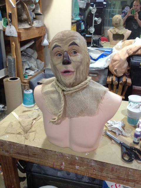 Jim Ojala has my Scarecrow of Oz bust nearly completed. Just a few color adjustments and fabric change-outs, and we’re done! Then it’s off to the seamstress for a tunic, and the hatmaker for the hat!