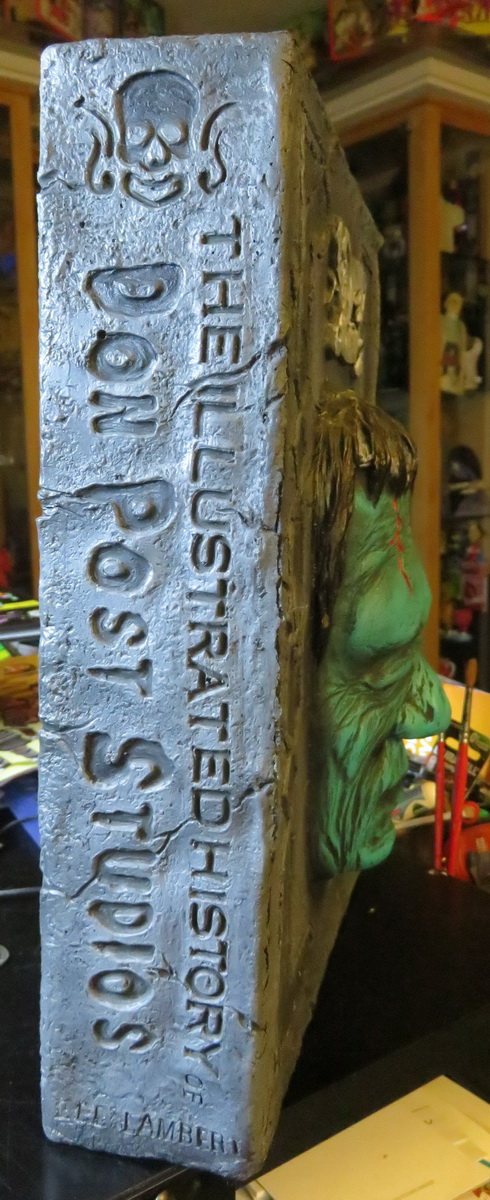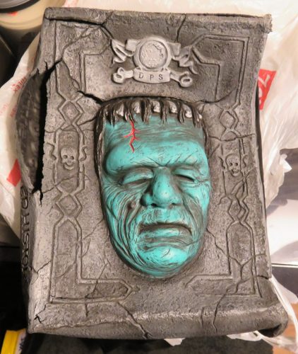 Friday the 14th – BARGE BUDDY! – Even though I didn’t have to be at a videogame session until 2, I woke up early enough to do several auditions in my home studio to start my day. I hopped in the Mustang and stopped by my accountant’s office to bring him some additional documents that I had forgotten to give him on Thursday. I picked up my mail at my mailbox, got some lunch at Taco Bell, and drove over to Marc Graue studios in Burbank to eat my lunch in their parking lot and listen to the radio until I was due to be inside to start my session. I had done the first session for this videogame a few weeks ago, and today was the second and final session to get all the voice tracks completed. We worked for a few hours and after I was wrapped, I went over to Foam Mart in Burbank to pick up some thinner for the glue I used while making puppets called Barge glue. It’s amazing stuff. But since it’s mostly used only by professionals, you have to go to a special place to buy it. Then I headed over to Alex In Wonderland effects studios to have them look my Oscar the Grouch puppet head over to start drawing a pattern to have him covered with fur. But when I got there nobody was there. I texted them to double check that we had an appointment, but they had a medical emergency in their family so we rescheduled to next week. So I took the time to stop by the grocery store to get some groceries for the weekend. I came home, grabbed a hot shower and relaxed. What a busy day! I took a short nap, and when I got up I decided to fix the slip cover on a book in my collection. Back in 2015 my pal Dan Roebuck, along with a company called Black Sparrow Productions, created the definitive coffee table book on the fabulous Don Post Studios; the trailblazing company who was responsible for every great latex rubber mask ever made. The book is gorgeously produced, and the cardboard container the book is housed in is covered with a latex slip cover that replicates the look of a very old book binding with a three dimensional face of Frankenstein on the front. I had the book stored on my book case standing up vertically. But when I went to review it last week I noticed that the latex slip cover had begun to rip and decay. Apparently, after talking with Dan, the gravity of the three dimensional Frankenstein face began to pull away from the slip cover, and other rips and tears were occurring as well. Dan had stored his flat on its back so no such deterioration had occurred with his copy. Trying to figure out a way to mitigate any further deterioration, I decided to Barge glue the latex slip cover right on to the cardboard housing that held the book. The back of the cover hadn’t decayed at all, nor did the edge, top or bottom. So I got a long brush, some Barge glue in a jar and a jar of thinner and went to work. I started by binding the slip cover’s edge to the slip cover and letting it cure. Then, with the long brush, I glued the top, bottom and back to the cardboard housing. After those cured, I started in on gluing the pieces of the front of the slip cover down to the cardboard housing. Dan had suggested stuffing the Frankenstein face with cotton to add support. That way there wouldn’t be any gravitational pull on the latex. Piece by piece I glued all the sections into place and repaired the damage. I stuffed the face with cotton and sealed it up. BEAUTIFUL! It worked amazingly well. In fact, I think that owners of this book should do the same with their copy, whether or not they’ve experience the same deteriorative issues as on mine. I also dug out an old VHS tape of two TV commercials I did in the early 90’s where I portrayed Freddy Krueger for a 1-900 phone company. I want to put a clip from one of them on my new Actor Reel, so I dubbed the commercials to DVD, downloaded it into my computer, isolated the parts I wanted to feature in my editing program, and dubbed it to a flash drive for my editor. Satisfied with a day well spent, with lots accomplished, I drove to Denny’s to get some food to go and came home to eat while watching an episode of “The Mod Squad” before bed.
