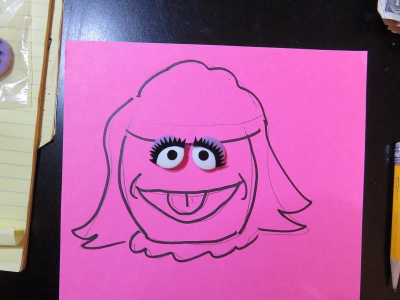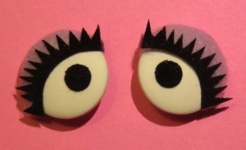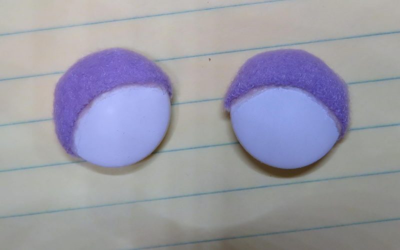 Thursday the 18th – EAR’S THE PROBLEM! – Well, it’s that time of year again. I dropped my personal tax materials off to my accountant’s office. Normally, each year, I sit in his office and we chat while he opens up all my documents to put them in order for tax return preparation. But this year it’s all different. I pulled up outside their office, called them to let them know I was outside, and they came down to meet me in my car to collect my documents. I had Roxy with me, so we took advantage of the beautiful day and headed to Paty’s to have lunch on the patio. When we finished our meal, I drove her over to the vet’s office to have her right ear looked at. She had been favoring it for a while, and scratching at it. She had also been suffering from hearing issues of late which I wrote off to her age. But then I started thinking that the issues may be related. Sure enough she had an ear infection. I was kicking myself because I should have put two and two together much sooner and had her treated earlier. But I got some ear drops that will hopefully put her on the road to recovery. I got back home to relax. Later I recorded my nightly auditions, did some work around the house, and started making the eye pieces for the Prairie Dawn puppets. I used white plastic shank buttons that are almost an inch wide. These buttons are domed just slightly and have a really great look. I sanded the gloss off of them and painted them with matte white paint. Once they were dry, I glued on the fleece eyelids and started cutting out the eyelashes out of stick-on velvet. I think they turned out great!