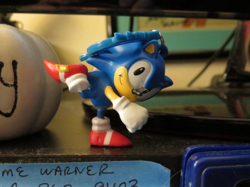 Wednesday the 17th – CUBOT SAVES SONIC?! – On a very windy day, Michelle and I hit the road for the Los Angeles International Airport. First we stopped for lunch at Del Taco (the best fast food hamburger in town!) and she was hooked! She made it clear that when she finally got moved to L.A. she was going to be a regular Del Taco customer. But as we got to the airport, I found it odd that, on a weekday afternoon, the normally bustling airport was a virtual ghost town! There was hardly anybody there! Michelle wasn’t kidding when she said she could get through screening and security in a matter of minutes. Now I can see why! I’m used to having to deal with scads and scads of thick traffic at the airport, and gingerly navigating around all of the cars and traffic. Not needed today. It was a little sad, to be honest. The travel industry hasn’t recovered very well I’m afraid. On the way home freeway traffic was also great. Even though it was windy the weather was gorgeous! I got home and did some work, cleaned up the house, did some work around Planet Wallywood, and put away all the puppet stuff that Michelle and I worked with to create our Prairie Dawn head and body pieces. During her trip to L.A. last Sunday, her little plastic Sonic the Hedgehog luggage figure suffered an injury – his left leg snapped off. During her stay I tried to repair it with several types of glue, but no luck. But I got a great idea about how to fortify it for repair and went to my trash can to retrieve him. With a very thin drill bit I drilled out the center of his dismembered leg, and I drilled a hole deeper into his body. I cut a toothpick to size and put a drop of Gorilla Glue into the leg hole. Then I inserted the toothpick. Once that was secure, I put a drop of Gorilla Glue in the hole in the body and inserted the leg and the toothpick. I cleaned off the excess glue and set it aside. Within a few hours he was totally repaired, and his leg was stronger than ever! When I got a message from Michelle that she made it home safely I showed her a picture of the repaired Sonic. She made note of the irony that Sonic was saved by Cubot! I guess I hadn’t considered that, but she’s right! I made some spaghetti and watched another episode of “The Invaders.”