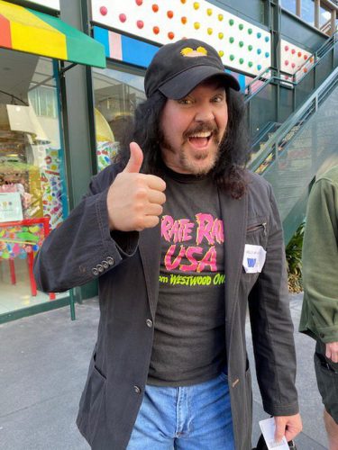 While walking around the Farmer’s Market after our Westwood One reunion, I stopped in the movie theater to get some popcorn. And I ran into somebody who looked VEEEEERY familiar!