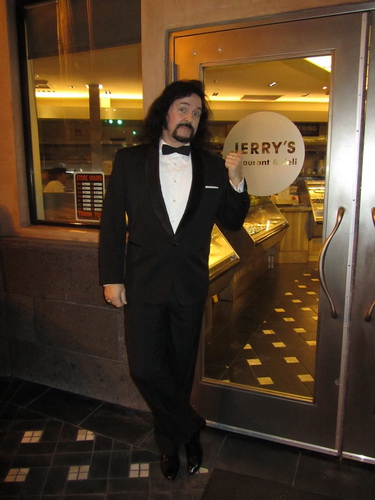 Sunday the 24th – BAD LUCKS TUX! – I slept very late, but got up in time for evening church with Roxy. Then I came home to get ready for the post-Oscar party my pal Brian invited me to at the Andaz Hotel on Sunset. The tux was looking good and it was ready to rock! I got a shower, did my hair and got dressed. But my pal Edi was running very late and hadn’t gotten to my house yet. She had a bad wardrobe issue she was dealing with. I told her we needed to be there at the party before the Oscars finished up to avoid the crowd. But as the evening went on it was looking more and more like that wouldn’t be the case. I checked on-line and it looked like all the awards had been given out. Uh oh! Edi arrived at 9:30 and we started the drive over the hill. But when we got to Sunset we hit major traffic! Sure enough, the Oscars were done and everyone was making their way to the various parties. Traffic was down to one-lane at one point, because of the Vanity Fair party. They needed a lane for all of the limos who were pulling up to drop off celebs. So we didn’t get to the Andaz until about 10:40pm. As we drove by the hotel, it didn’t look like there was anyplace to park (even the valet area was packed with parked cars!) and there was a line of people coming out of the hotel, wrapping around the front of the hotel, and extending down the street a long ways. At that point I realized that trying to get in would be pointless, and that we wouldn’t be gaining entry to the party any time before midnight! So I made an executive decision and turned around to go home. I was starting to think that my tuxedo was bad luck. This was the second time a function to which I had planned to wear the tux had been aborted. The first time was a photo shoot with a bunch of James Bond girls at an autograph show. They ran out of time to do it when I was there, so it never happened that day. I guess I’ll see what happens the next time I want to wear it, and be very aware of what happens. If it happens a third time, I think my time in a tuxedo will be at an official end. We picked up my assistant Sara and headed to Jerry’s Famous Deli to get some dinner. We looked fabulous though! After dinner I came home, ditched the tux and put on my pajamas. I did a bunch of auditions, some work around the house, and then I went to bed to rest up for an early session the next day.