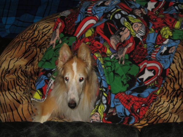 Saturday the 25th – GOODBYE, GOOD FRIEND! – Obviously sleeping wasn’t easy, and after about 3 hours of sleep I sprang awake. It was only 9am and the doctor was still 5 hours away. I fed Roxy some more of her favorite foods, gave her a few more pain pills, and picked her up so she could have some water. The rain had paused for about an hour, so we went outside for one final outdoor potty break. She did both #1 and #2. What a good girl. She walked around on the wet grass for a while but I could tell she was getting tired. I carried her back inside to lie down. Back in 2011 when my other collie Sassie passed away it was entirely different circumstances. Circumstances that I’ve always regretted. She had neurological myelopathy in her back legs. There wasn’t any pain because the nerves were all dying. It basically just felt like her legs were asleep. Because of her size I had to take her down to a facility in Orange County that had an MRI machine capable of accommodating a dog of her size. I left her overnight for the procedure to see if there was anything, ANYTHING that they could do for her. They would put her under anesthesia so she wouldn’t move around during the scan, and assess the situation with her back legs. They called me the next morning and told me there wasn’t anything they could do. Furthermore, while she was under anesthesia, her blood pressure was dropping considerably. They asked what I wanted to do. My logical mind took over and I said, “Let her go.” When I hung up the phone I remember collapsing to my knees in absolute pain and sorrow. While I wouldn’t get to see her one last time, it was the logical thing to do. The alternative was to have them bring her out of anesthesia, I would travel all the way to Orange County, see her one final time, (if she even was able to be revived) and then they’d administer the final medication. It just didn’t make any sense for them to do that to her. Though it was the logical thing to do, I’ve always regretted not being there with her at the end. I vowed that I wouldn’t do that again. So as hard as it will be, at least Roxy will be in my loving arms when the time comes. I came back inside to lie down but I just wasn’t tired. I distracted myself by working on Super Grover’s pudgy little tummy. As I went out to periodically check on Roxy she was awake, looking at me. She was either looking for more of that yummy blueberry bread, or she could read my energy and knew that something was up. I kissed her smooch patch and gave her a lot of pets during the day. I knew she couldn’t hear me, but I was hoping she could read my spirit. I told her what a great dog and a wonderful friend she’s been, and that we had some great adventures together. It was 1pm when the doctor called and said she was on her way. I strapped on my “Mr. Spock” attitude and tried to approach the rest of the afternoon with logic and common sense. By the grace of God I’d be able to maintain a stiff upper lip through it all. It was the right thing to do, after all. The doctor arrived and backed into my garage. She explained how everything was going to happen and she came upstairs to meet Roxy. I had a full and complete understanding of the process. Without going into the details of the procedure, just know that I was curled up on the floor behind Roxy kissing and petting her throughout the entire thing. The strangest thing happened. As we were all surrounding Roxy, Spooky came down to investigate. He literally jumped up on me and stood on my side as I was petting Roxy. DAMN is that cat intuitive! He knew something was up too. As the doctor worked on Roxy, Spook got down and walked around her to look at what was going on. I think he was honestly concerned that she was going to hurt Roxy. The doctor and her assistant were great. The doctor administered the final medication, put her stethoscope on Roxy’s chest and around 2:45pm she said, “Roxy has passed.” I thanked her for her help and asked if they needed assistance carrying her downstairs to the car. They said they would handle everything. It was a gloomy, cold, rainy afternoon that I’ll never, ever forget as long as I live. As painful as it was, I was very glad that I was there with Roxy for the end; unlike the situation with poor Sassie. As they drove off into the stormy gray day, I stood in my garage and waved a final goodbye to the greatest dog I’ve ever known. The end of an era. When I went back inside I was completely numb. It was all too surreal. But again, it was the right thing to do. Her quality of life was not good, and it was actually a cruelty to keep her around any longer in her condition. I came back inside and worked on Super Grover some more. I didn’t know what else to do, but I had to stay occupied and distracted. I couldn’t go outside, it was a monsoon. Around 3:30 I fed Spook an early dinner, put a post about Roxy on my social media accounts, I showered and slept in the Puppet Room. Completely mentally and spiritually exhausted, I slept for 10 hours. It’s the first time I’ve slept longer than 4 hours in many, many months. But I really needed it. When I got up I checked my social media, cried a lot, and decided to start cleaning up the living room; which had been Roxy’s living quarters since May. I restored it back to the living room it once was. I pulled up all the rubber padding, took it out the garage and shredded it into little squares so it would fit into my recycle bin. I brought the little wooden fences that surrounded Roxy’s living perimeter down to the garage for storage. I washed out her food bowls and kept them, but threw out the metal frame that held them. It had become rusty and nasty. I cleared out all of her food and supplements from the cabinet. The prescriptions I’ll give back to the vet’s office, but the food and supplements I’ll donate to the local shelter. I’ll also donate all of the leftover diapers and potty pads. I’m g