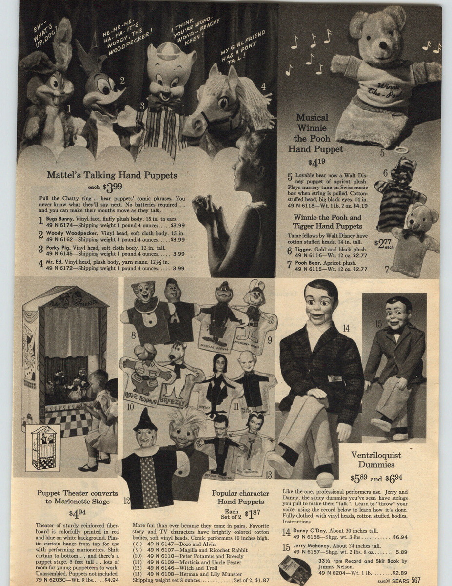 Back in ‘the day’ it wasn’t hard to find a puppet version of your favorite TV or movie character. Today it’s a lost art, sadly. But just look at all the cool puppets you could buy back then!