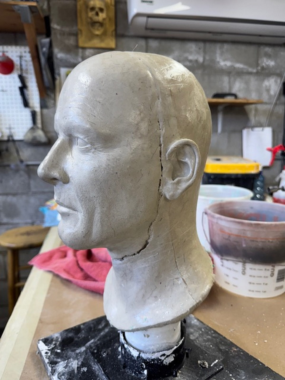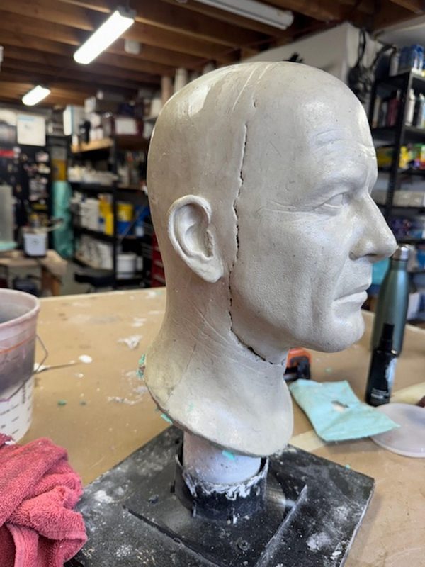 The Roger Moore facial sculpt made it out of the molding process with very little damage, but unfortunately there’s really no good way of preserving the clay sculpture. Once the mold is made, the clay’s work is done, and oftentimes the clay is simply recycled into a new sculpture. Sad, but true.