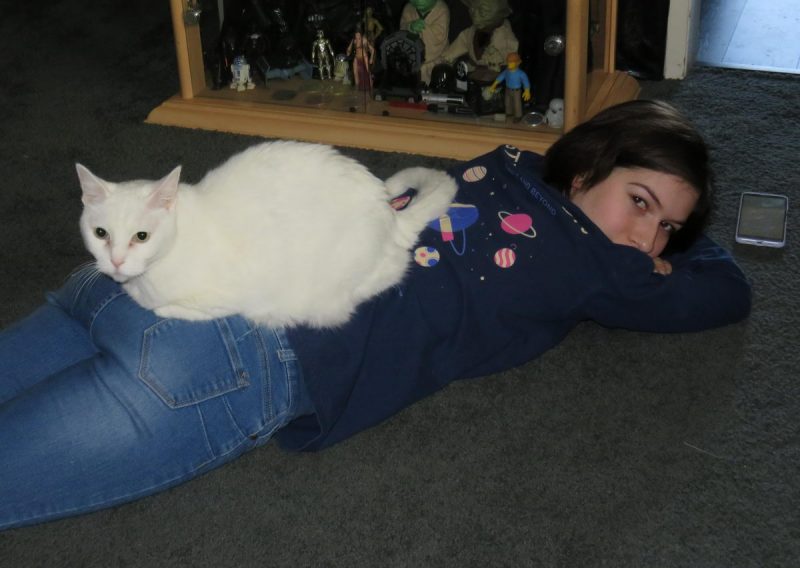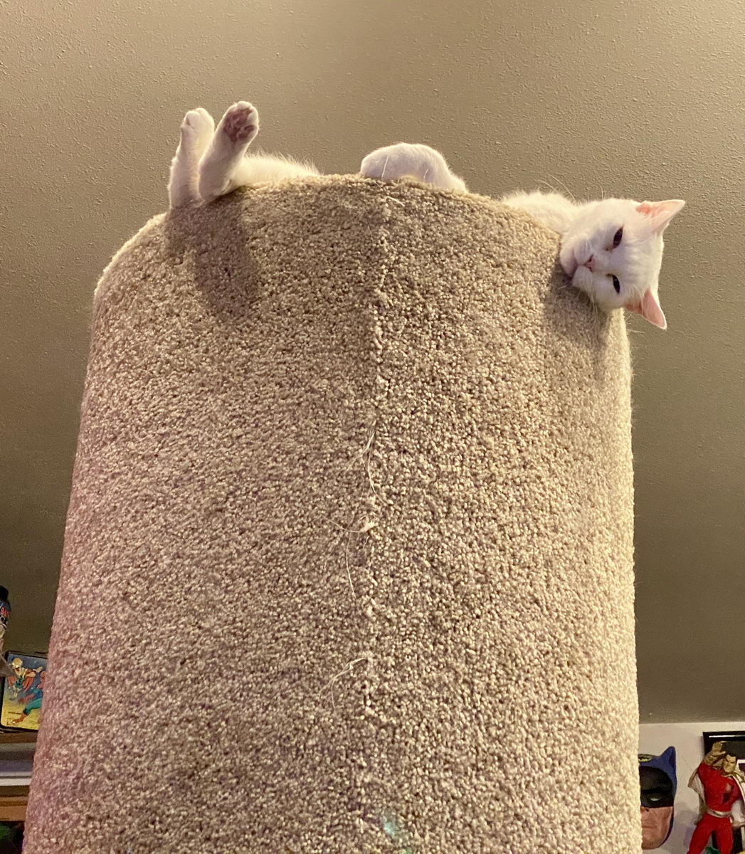 When the heater’s on in the house, my cat Spook loves to lay on top of his cat condo and soak up the hot air. He takes on the look of a Salvador Dali painting…all ‘melty’ and stuff.