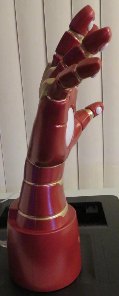 Tuesday the 9th – RUNNING (AND PAINTING!) THE GAUNTLET! – Mid-afternoon I had a 40 minute phone call with a state government judge about an appeal I had filed over a personal issue. Because of the whole virus thing no in-person appearances have been allowed for about a year. But it gave me the chance to state my side to a real person, and not some algorithm on a website. I was satisfied with the result of our conversation and I left the call with the impression that she was up to speed on the real dynamics of the situation. I’m hoping she’ll move to dismiss. I drove to Paty’s with Roxy and had a great lunch on the patio. Like me, Roxy had also missed going to lunch during the prohibition on outdoor dining in California. I picked up the packages at my mailbox, and then went home to complete work on my Iron Man gauntlet lamp. Once finished I was very happy with it. If I had to do another one I would do a few things differently, but I learned a lot about the repainting process on these. It was down to the garage to get the big ladder, back upstairs to the theatre to position the finished gauntlet with the rest of my Iron Man items on top of my massive video case, and do a clean-up of the whole area. It looked GREAT! I recorded my nightly auditions, then I made some food and watched another episode of “The Invaders.”