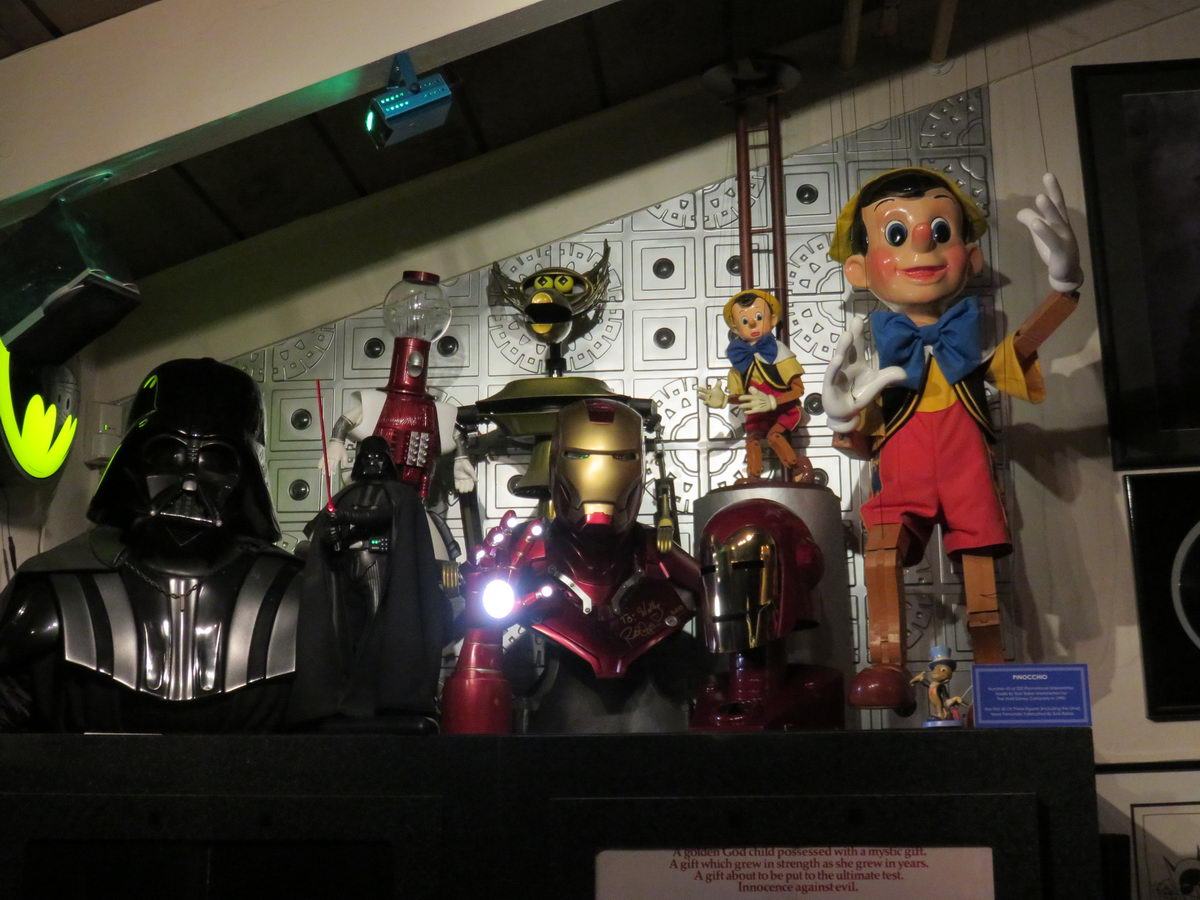 Friday the 12th – SYSTEM STREAMLINED! – While doing some recent work adding a few new components to my entertainment system (the new DirecTV box, and a brand new turntable) I took notice of how messy the whole system looked from the back. It was a mass of muddled spaghetti – twisted cables, and a confusing, ugly visual of intertwined wires and cords. In some instances there were unplugged cables that I wasn’t sure were even relevant any longer. Since I originally had the system installed 20 years ago, I’ve added a lot of new things as an afterthought over time. As things get added, and as things get pulled out after they break down, cables get pulled out, technology changes, and it gets very confusing what IS and what ISN’T needed any longer. I decided to have Corey, my A/V guy, come in and rethread the entire system. It needed a massive streamlining and cleaning up. I’m glad he did, because he was able to make sense out of a lot of things that no longer were needed and rewire things accordingly. He just happened to have a little gizmo that would allow my system to accommodate a firestick (like Roku) if friends came over to stream some things for me. This same gizmo can also take the audio from the firestick and send it into my system (as opposed to having to listen to it on my TV speakers). After he left I went about Planet Wallywood installing some new display pieces. First I hung the cartoon LP cover on the wall in my showcase area. I put the Henson ad artwork in the Puppet Room, and I brought my Batkid mannequin up from the garage and put him in the theatre, next to my drive-in movie speakers, and my Sebastian Bach chainmail tank top. I ordered up a Domino’s pizza, took some photos of the new displays, and did some work around the house for the rest of the night.