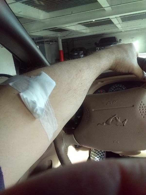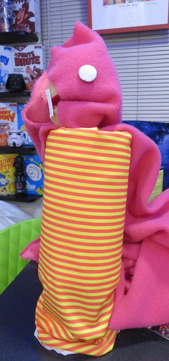 Wednesday the 12th – I VANT YOUR BLOOD! – The first stop was at Quest Diagnostics to give a blood sample, and then I went to the cleaners to pick up my comforter. I stopped at Paty’s and had a great salad on the patio on a gorgeous, sunny day. My old pal Davae Shelton was walking by, spotted me, and we chatted for about 45 minutes. I got home to feed the kids and made a puppet stand for my friend Michelle’s Prairie Dawn replica Muppet. I decided it was time to totally clean out my paint and glue drawer, and I threw out a bunch of old stuff. I organized things and put them in little plastic boxes and now it’s much better. I also started making a tiny, little “skeleton hand” for my Roosevelt Franklin Muppet replica, using armature wire and Magic Sculpt molding epoxy.