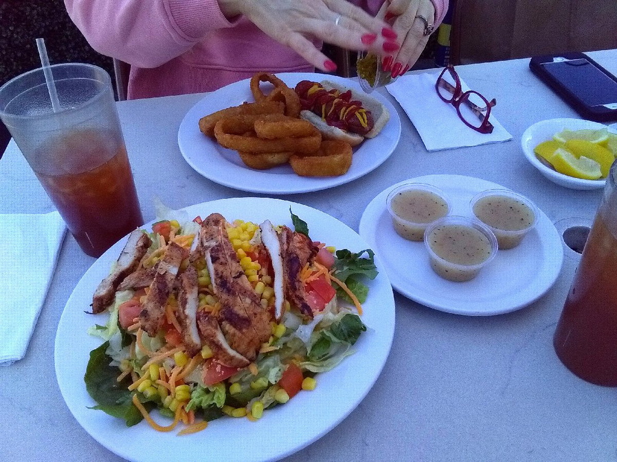 Edi had the hot dog, and I had the salad. LOVE PATY’S!