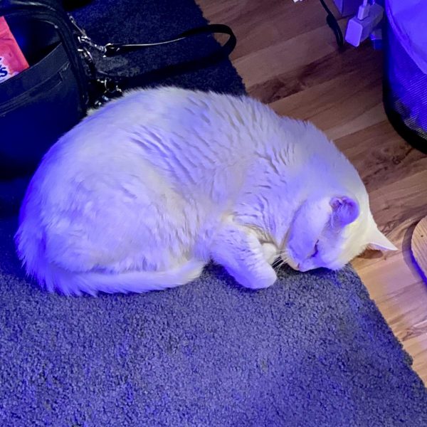 Saturday the 16th – JUST LIKE PALM SPRINGS!? – By the time I awoke in the early evening, and was walking Roxy, we heard a bunch of voices out behind our building. Several of my neighbors had their dogs out there and were watching the dogs play. So Roxy and I decided to join in as well. It was gorgeous out – very warm and pleasant. Plus, we were all facing the western sky, so as we chatted and watched the doggies frolic, we also got to watch the sun set. It was amazing. Warm, sunset, doggies – it all reminded me a bit of being in Palm Springs. I ordered some food to go from Ernie’s Taco House and headed out to pick it up. I gassed up the Mustang, picked up a few supplies at the neighborhood market, and came home to enjoy my dinner. Not wanting to wait until Sunday or Monday, I decided now was a good time to record all my auditions, which were due on Tuesday. I recorded a few more elf lines for “Christmas Across the Lands,” and made my traditional “Saturday Night Super Saint Salad” and watched another episode of “The Saint” before bed.