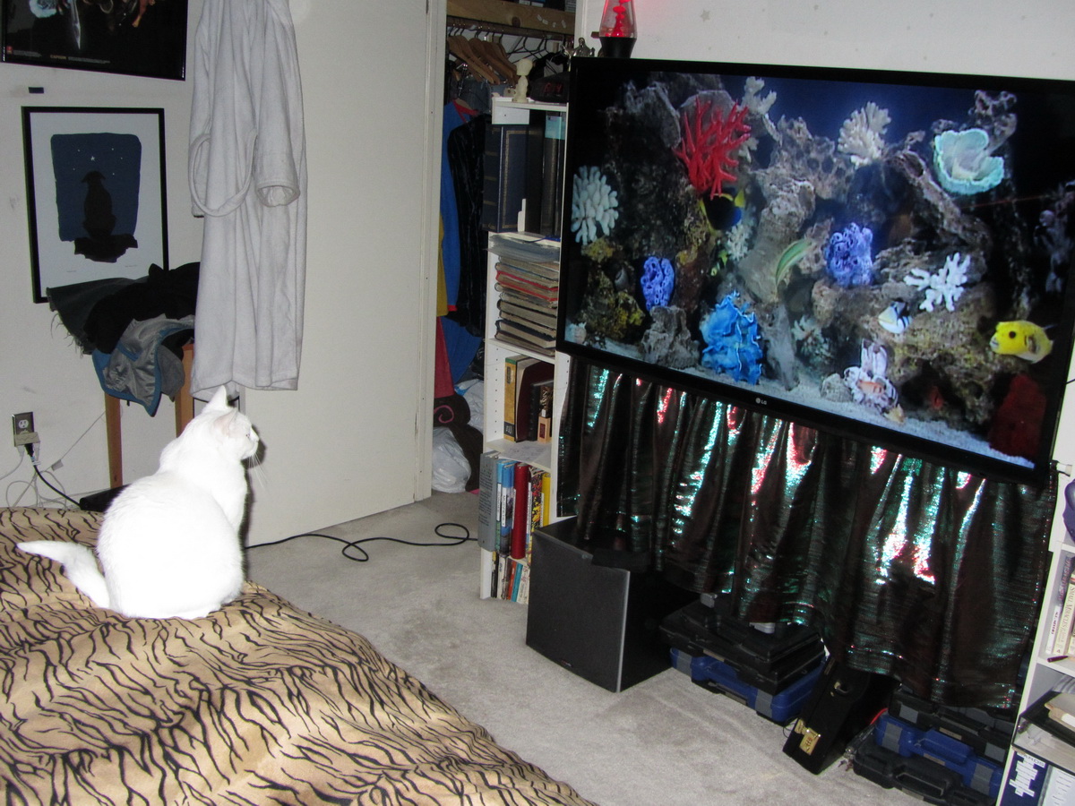 As I was watching the recently purchased aquarium DVD, I found out it has another fan who enjoys it almost as much as I do! My cat Spooky couldn’t take his eyes off it!
